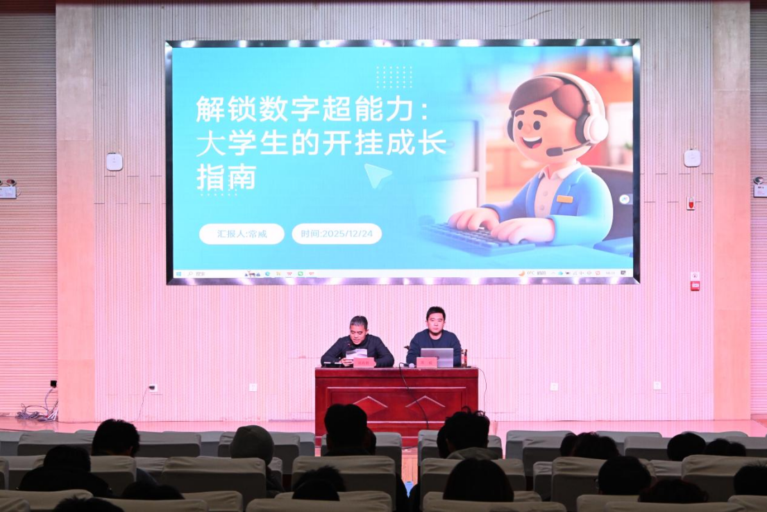 常威以“解锁数字超能力:大学生的开挂成长指南”为主题,通过真实学生成长案例,系统讲解了数字素养在个人发展中的重要作用,重点介绍了图书馆资源使用技巧、各类证书备考策略、专业学习与竞赛资源整合方法,以及AI工具在学术与办公场景中的实践应用等内容,帮助学生增强信息获取、资源整合与智能工具运用能力。