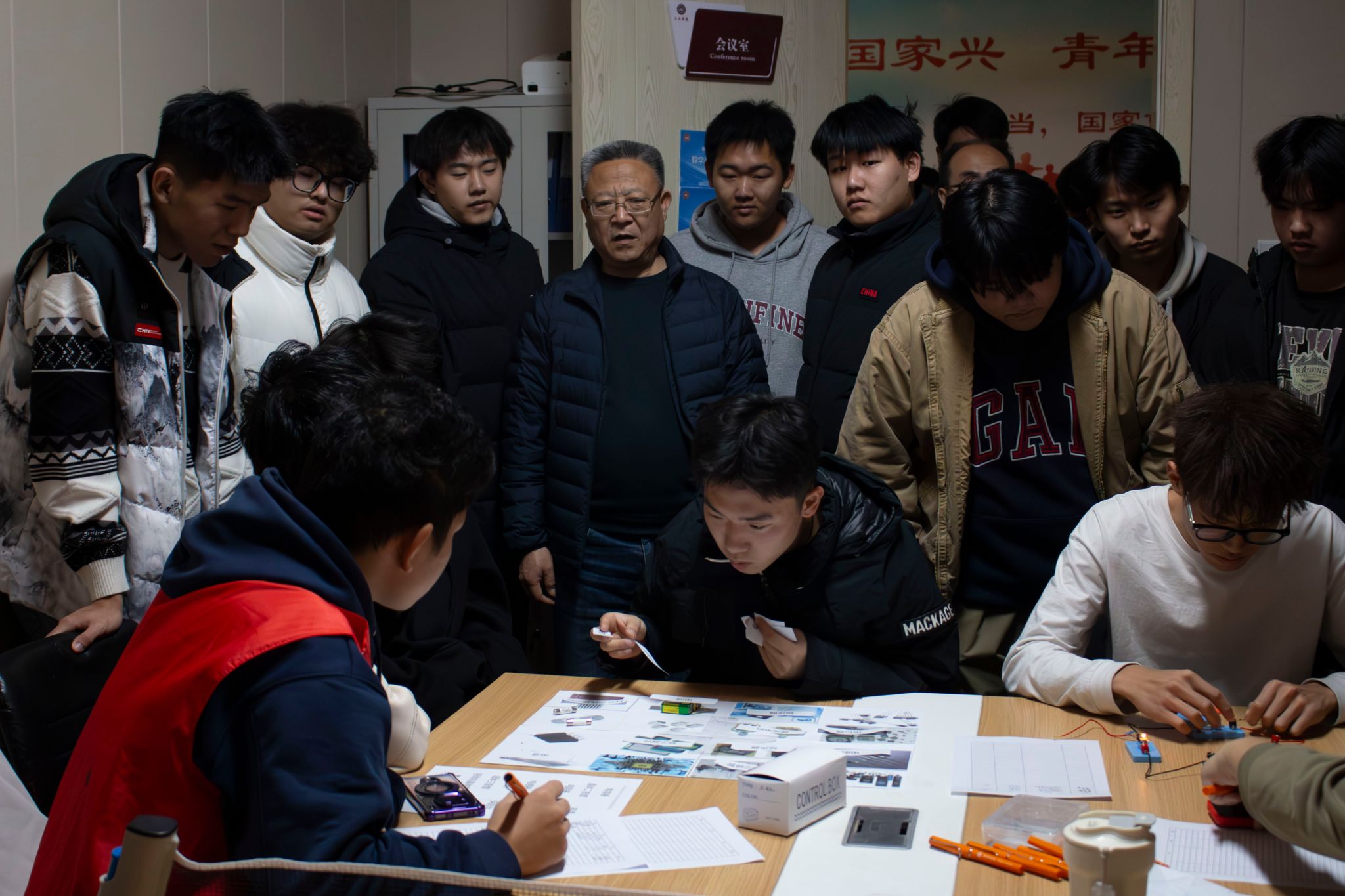本届活动以“科技点亮校园,创新赋能成长”为主题,旨在展示学生科技创新成果,激发创新潜能,培育积极探索的校园风尚。活动分为科技成果展示和趣味科技试炼两大板块,其中,科技成果展示在2215工作室集中呈现,展出了研发产品、专业实践成果、各类获奖作品等来自各年级学生的实物创新作品。书院领导在展区驻足观看,与同学们互动交流并详细了解作品创意。趣味科技试炼活动在2209、2211、2214工作室开展,共设置数学几何钉画、纸飞机精准投掷、电路元件“牵手”与速配、扑克牌纸塔搭建五项趣味项目,锻炼了同学们的动手能力与空间思维,也激发了他们对科学原理的探索热情。