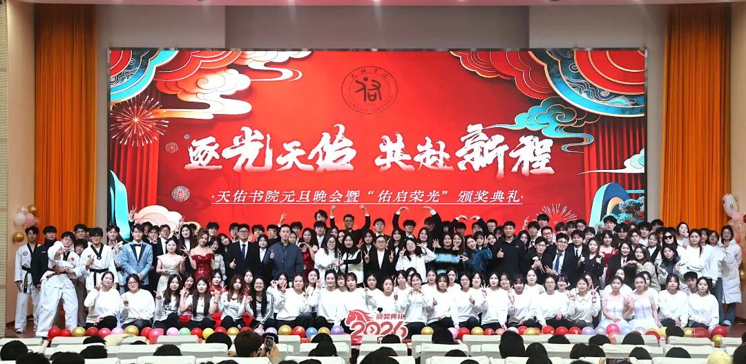灵蛇辞岁留祥瑞,骏马迎春启新程。12月30日,天佑书院2026年元旦晚会暨“佑启荣光”颁奖典礼在图书行政楼西报告厅举行。学校产教融合中心主任王培林,天佑书院党总支书记、院长陈海燕以及全体辅导员老师与四百余名同学欢聚一堂,共迎新春。