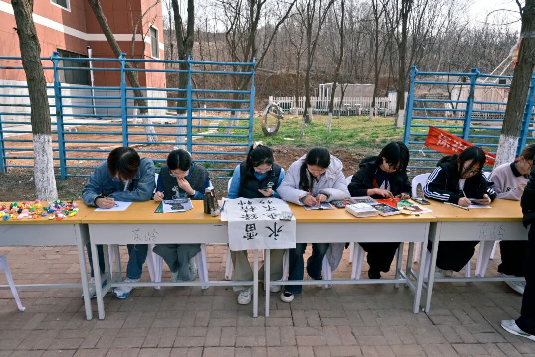 手工制作区,同学们以黏土为媒介,将自己喜欢的元素揉塑成生动的手工作品。一件件充满温度的黏土手作,成为青春向雷锋精神致敬的鲜活注脚,吸引了许多同学参与创作与观赏。书画创作区的学生们借助笔墨抒怀,以火漆寄意,大家写雷锋语录,画奉献场景,在一笔一画间、一熔一印时感悟精神力量。“以物易物”与“爱心捐赠”活动中,同学们将闲置书籍、文具、生活用品等拿出分享。大家在交换与赠予中践行节约环保、互助共享的理念,一件件闲置物品重新发挥价值,传递温暖与善意。寄语墙前,大家认真写下对雷锋精神的理解与心中理想,字字句句真挚动人。