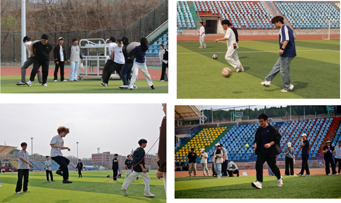 随后,全体师生在领操员带领下完成热身操,并启动“师生健康跑”环节,各书社学生在辅导员带领下绕场慢跑,展现青春活力。趣味运动会设置了八字跳绳、同心传球、托球接力、螃蟹赛跑等集竞技性、趣味性于一体的项目,各书社队伍团结协作、奋勇争先,现场气氛热烈。赛场旁,歌唱组同学倾情献唱,为运动员加油助威,将现场气氛推向高潮。
