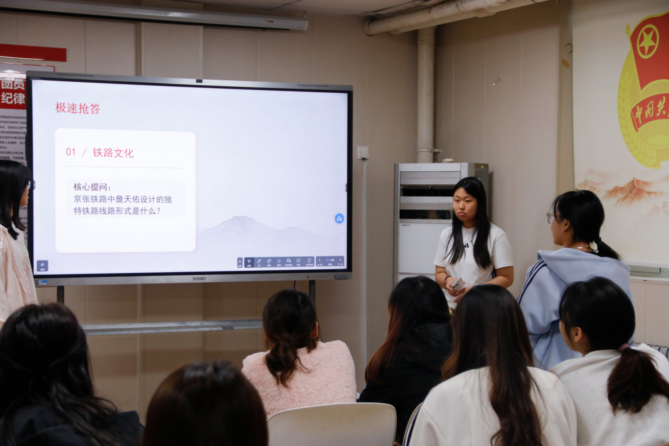本次活动设置三个环节,兼顾团队协作与个人能力。首轮“基础轮答”环节中,八支队伍依次作答,十六道题目涵盖铁路历史与儒家经典两大主题,同学们参与其中,感受知识带来的乐趣。