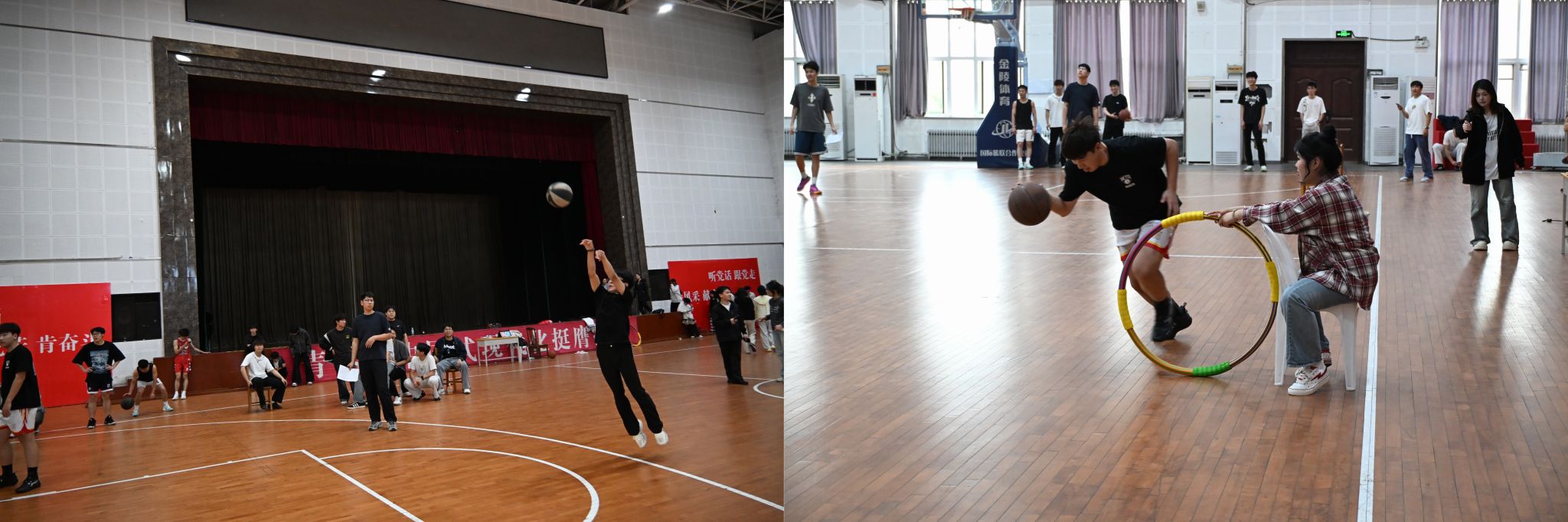 赛事设置男子三分球大赛、运球技巧赛和女子中距离投篮赛三个项目。比赛过程中,各项目组织有序,精彩纷呈。男子三分球大赛中,参赛学生于三分线外规范站位、稳定发力、精准投射,展现出扎实的篮球技能;运球技巧赛环节,选手们灵活穿梭于障碍物之间,动作连贯流畅,充分展现了良好的球感与控球能力;女子中距离投篮赛上,参赛女生沉着冷静、动作干脆利落,以稳定的发挥彰显了当代女大学生自信自强的精神风貌。活动现场气氛热烈,秩序井然。经过比拼,周渲博、乔冬阳、王一雯、王子晴等同学分获各项目金牌。
