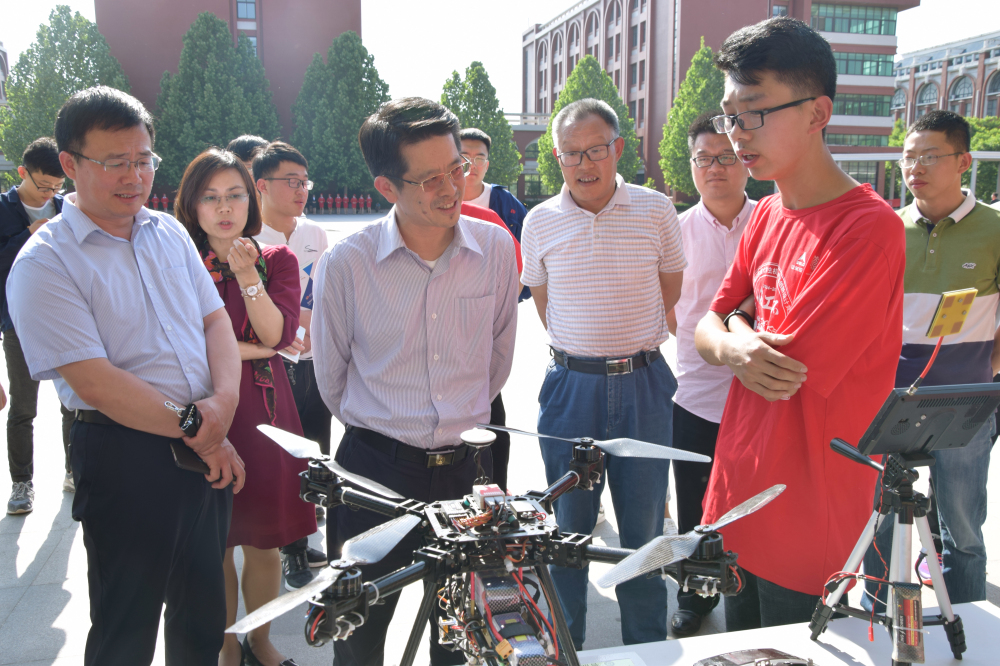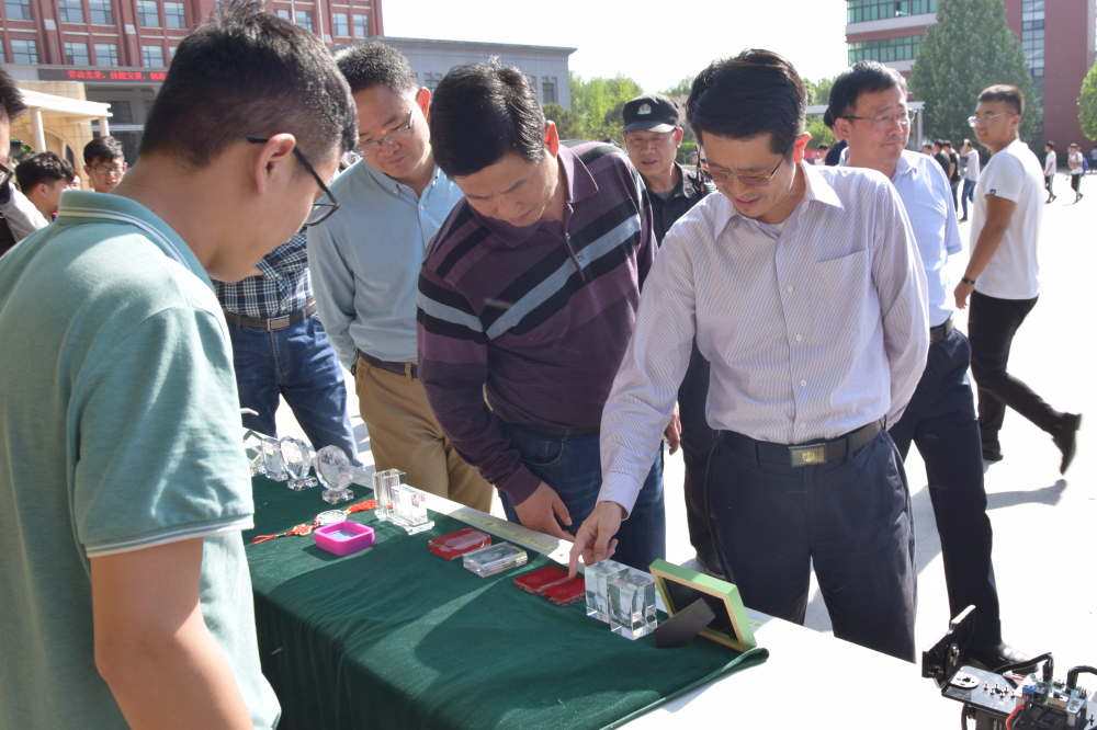 参加此次创新成果展的领导们观看了学生科技制作、科研成果、创新成果等展览,认真听取了各个作品的讲解,观看了作品功能展示,并高度赞扬了学生在科技创新活动取得的成绩。