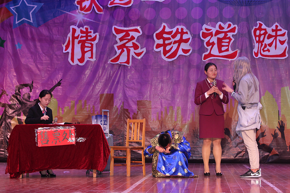 铁路风采展以一段热烈的开场舞拉开序幕,鲜艳的礼服与优美的舞姿带动起了全场气氛。《车站故事》和《地铁轶事》分别讲述了发生在火车站及地铁站里的故事,通过站务工作人员与乘客之间的幽默故事展示了站务工作人员的敬业精神,赢得了观众们的热烈掌声。《接发列车》通过表演者指挥列车的信号旗为观众们展示了车站助理值班员的岗位技能;歌曲《坐上火车去拉萨》,歌声甜美悠扬,伴舞们随节奏翩翩起舞,极具观赏性;礼仪风采通过“服务标准展示”向大家呈现了乘务员们服务旅客、情系旅客的精神面貌。张锦师与杨冀老师共同进行的一段礼仪展示更是将本次活动推向高潮,最后的一声“复兴号欢迎您!”向观众传达了复兴号动车组列车的风采,表达了对祖国繁荣昌盛的美好祝愿。由大二学生表演的《那一刻》讲述了在一条条铁路线中的聚散离别,当从远方归来,兄弟知道母亲生病时毫无犹豫的伸出援手相助,心中一暖,情侣分手后在站台回忆着过去发生的一幕幕,感人至深。最后,本次风采展示活动在合唱《光阴的故事》中完美落幕。