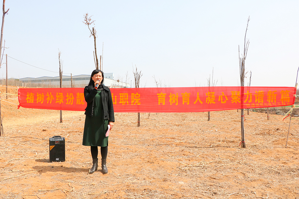 携手共建校园绿,植树添绿正当时。3月27日,铁道供电与电气工程系开展“植树添绿扮靓美丽山职院,育树育人凝心聚力谱新篇”主题活动。系党总支书记刘红、副主任张伟、代理团总支书记冯国英、专业课教师崔景萍与100余名学生干部、志愿者齐聚学院后山,为美丽校园增添新绿。