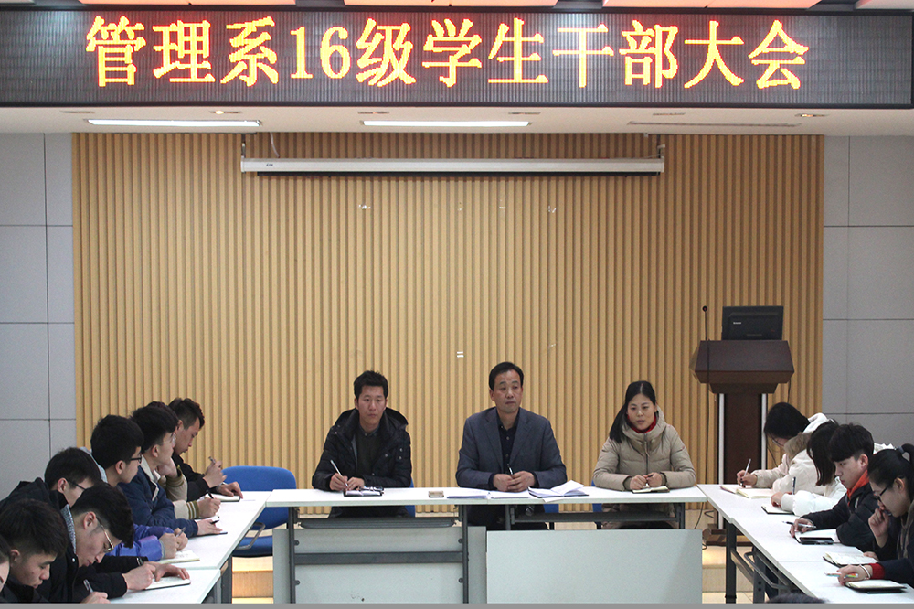 为加强学生干部及各部门之间的沟通与交流,增强凝聚力,提高工作效率和自身素质,铁道运输与财经管理系于1月3日召开学生干部大会。系党总支书记吕鹏,团总支书记张锦和2017级辅导员杨冀老师出席大会。