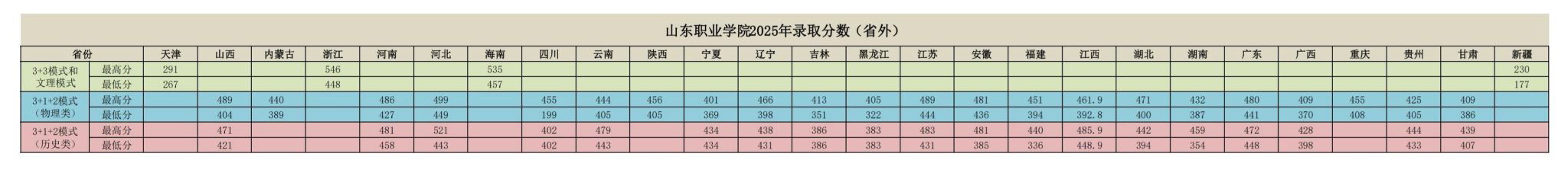 山东职业学院2025年山东省及省外录取分数