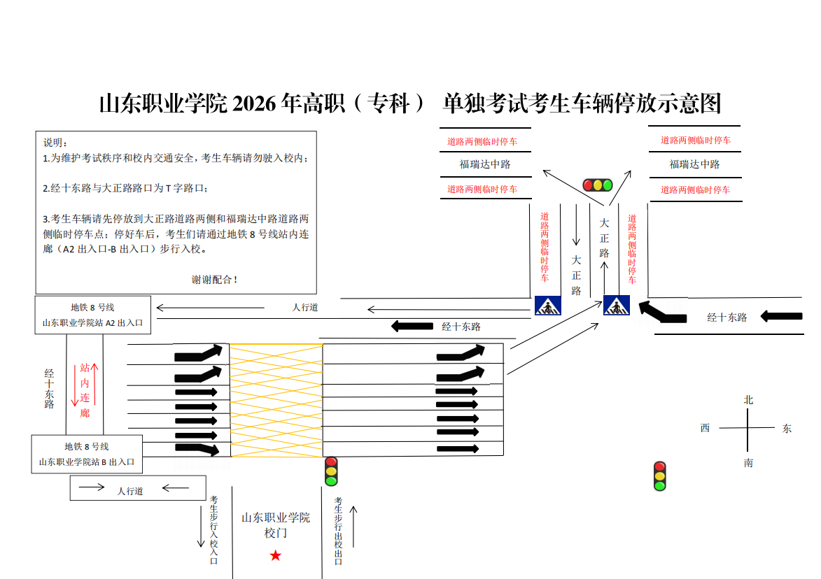 山东职业学院2026年高职(专科)单独考试招生考生车辆停放示意图