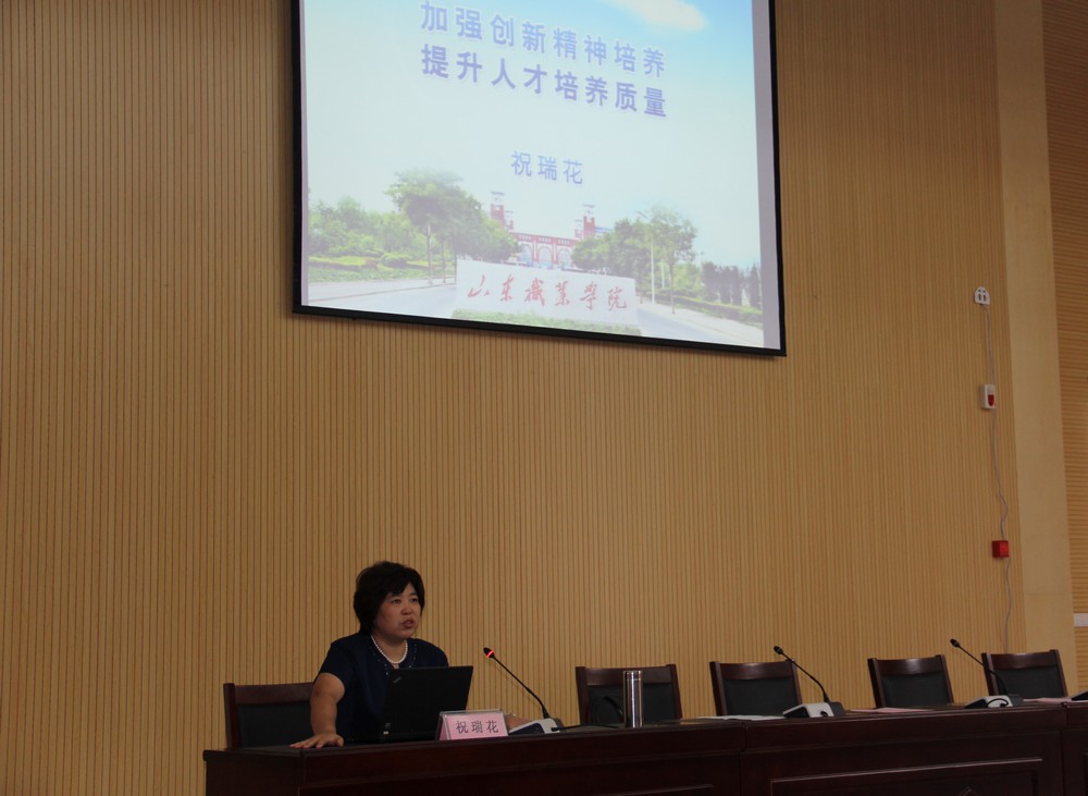 开班典礼结束后,祝瑞花做了“加强创新精神培养,提升人才培养质量”的专题报告,从对高职创新精神培养的认识、创新精神培养的探索与实践、创新型人才培养机制、提升人才培养质量4个方面进行了细致阐述。在报告中,祝瑞花介绍了山东职业学院在创新精神培养方面进行的深入探索,并在探索中总结凝练出成熟的创新精神培养模式和创新型的人才培养机制,学院也两次被授予“济南市知识产权先进单位”荣誉称号。她希望与职教同行们共同努力,加快转变教育教学观念、大力提高人才培养质量。