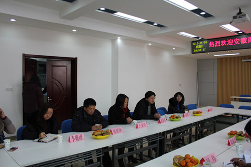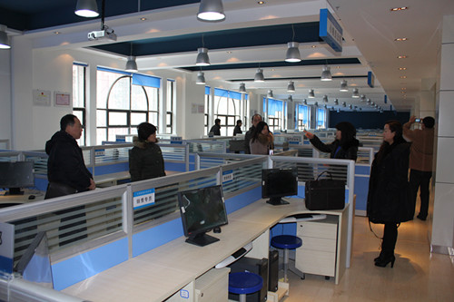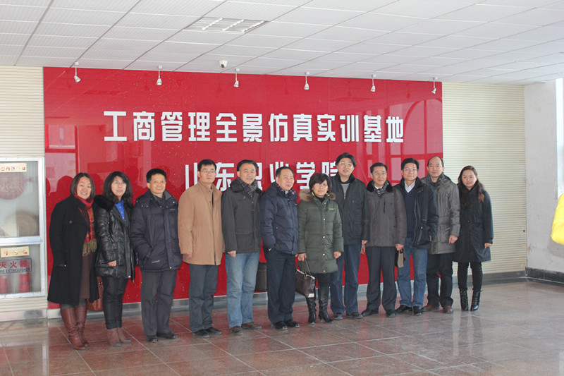 2013年1月6日上午,管理系接待了来自安徽商贸职业技术学院的领导一行7人;下午又接待了来自河北大学、河北金融学院、河北青年干部管理学院、河北经济管理学校等四所院校组成的考察团一行二十余人。在用友新道科技有限公司山东分公司总经理于美玲女士的陪同下,两个考察团主要是考察我院管理系工商管理全景仿真实训基地,管理系主任汤华东、副主任张世体、实训中心主任李勉等热情接待了各方来宾。