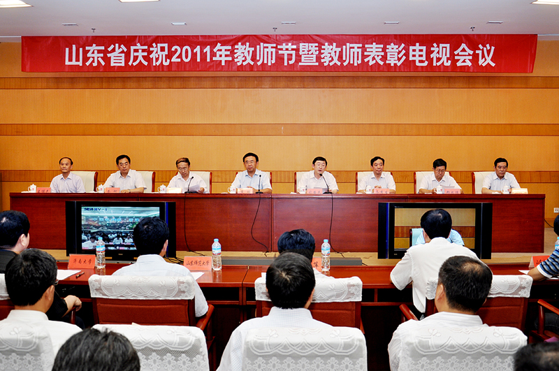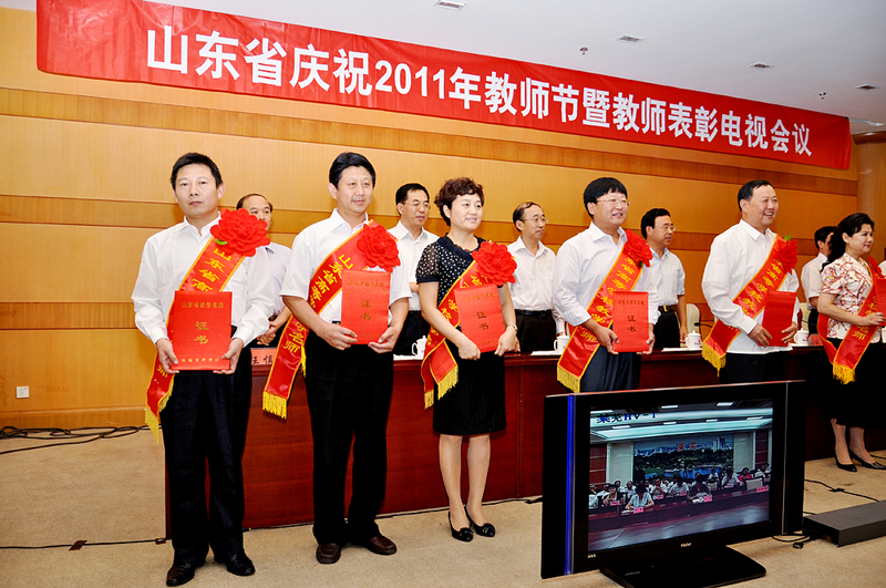 9月9日下午,山东省政府隆重举行电视大会,庆祝我国第27个教师节,并对山东省教学名师和年度教育创新人物进行表彰。副省长黄胜出席会议并作讲话。 省委高校工委书记、省教育厅厅长齐涛,省教育厅党组副书记、副厅长张兴民等教育厅领导,省委、省政府有关部门负责人,驻济高校负责人,山东省教学名师代表、年度教育创新人物及济南市中小学校长、教师代表在济南主会场参加了会议。山东职业学院党委副书记、常务副院长马文卿代表山东职业学院参加了会议。山东职业学院教师杨云喜获“山东省教学名师”称号并参加了本次盛会。 黄胜首先代表省委、省政府向全省广大教师和教育工作者致以节日的问候和崇高的敬意,并充分肯定了我省教育工作取得的成绩,就进一步全面落实省《教育发展纲要》进行部署,对全省教师寄予殷切希望和良好祝愿。 黄胜强调,要以创新的精神全面提高教育科学发展水平。要着力在深入实施素质教育、推进基础教育优质均衡发展、完善职业教育体系创新发展机制、提升高等教育内涵发展水平几方面上实现新突破。要以过硬的措施全面提升教师队伍整体素质,建立师德考评制度,进一步加强师德建设。加大培训力度,保证优质师资的稳定供给。加强中小学编制管理,严格教师资格管理制度。要在政治上、生活上关心教师,维护教师合法权益,促进教师成长进步。 黄胜在讲话中要求全省广大教师和教育工作者,要忠诚党的教育事业,成为爱岗敬业的典范;要为人师表,成为人格修养的楷模;要关爱学生,成为以身立教的榜样;要严谨笃学,成为博学多才的学者;要勇于创新,成为教书育人的专家。 会议宣读了关于山东省教学名师和年度教育创新人物的表彰决定,并为获奖代表颁发了奖状。 潍坊市教育局局长张国华,山东省教学名师、山东师范大学教授黄明水,山东省年度教育创新人物、济南市经五路小学校长阎莉分别在会议上作了发言。 各市政府分管负责人,有关部门负责人,驻地高校主要负责人,中小学校长、教师代表在各市分会场参加会议。