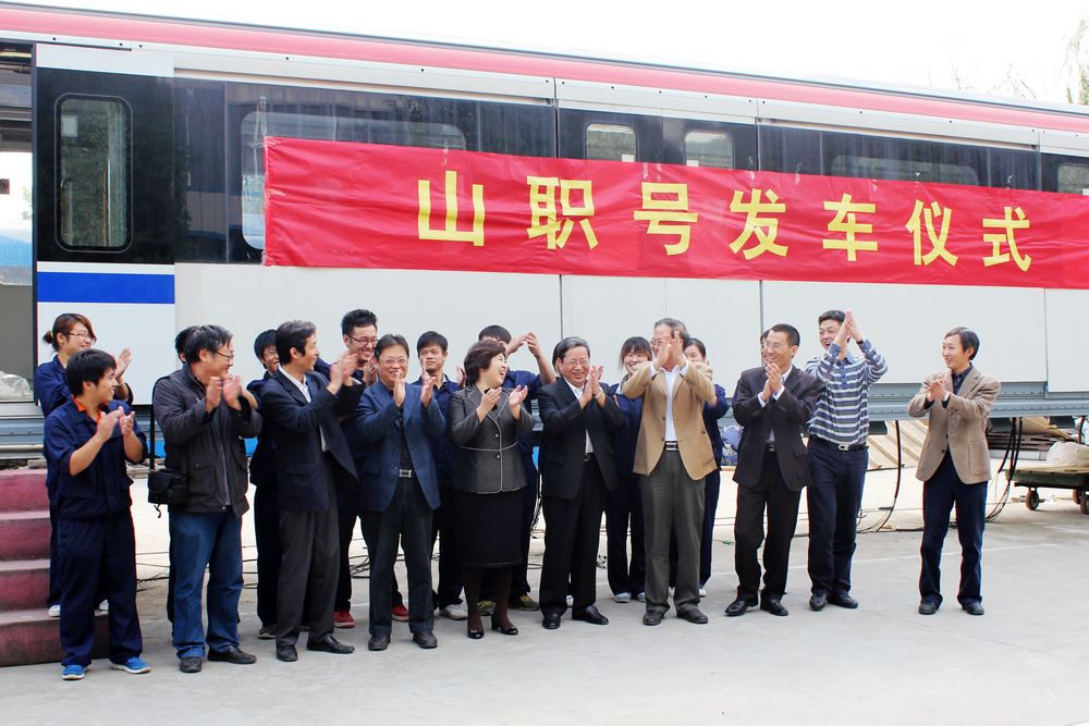 10月5日,山东职业学院“山职号”城轨车辆教学实训车在南京正式组装完毕,山东职业学院院长邓洪基、副院长祝瑞花、轨道交通系主任吴书锋和实训中心主任徐向岭一行四人赴南京对该车进行了验收。 随着邓洪基院长一声令下“发车”,“山职号”城轨车辆教学实训车正式启程,计划于10月14日到达济南,落户山东职业学院。这是济南市也是山东省的首辆地铁车辆,必将为山东职业学院轨道交通类专业的建设和发展带来极大的促进作用,也将为山东省的城轨地铁发展起到积极推动作用。 “山职号”城轨车辆教学实训车是由山东职业学院轨道交通应用技术研究所与南京海天轨道车辆装备有限公司联合设计、共同开发,基于深圳地铁四号线原型车,并将动车、拖车技术和装备集中于一体。能够完全满足城轨车辆检修、驾驶等岗位的实习实训、项目教学和学习司机、检修人员的培训鉴定需要。