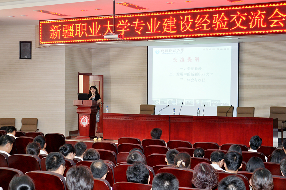 6月30日下午,山东职业学院副院长祝瑞花、各系部主任、副主任、教研室主任、专业骨干教师和教务与科研处的相关同志参加了在我院学术报告厅举办的新疆职业大学专业建设经验交流会。会议由祝瑞花副院长主持。 新疆职业大学教务处游海丽处长于今年上半年到我院挂职锻炼,通过半年时间,给我院教务处工作提出了很多建设性意见。在此次会议中,游海丽处长作了主题发言,游处长从美丽新疆、发展中的新疆职业大学、体会与收获三个方面,介绍了新疆的地理、民族、气候、瓜果、旅游、战略资源等自然状况,新疆职业大学的基本情况、教学改革与发展、课程建设等诸方面的概况,最后游处长对山东职业学院和新疆职业大学以后的发展和交流充满了期望。 山东职业学院祝瑞花副院长作了总结发言,祝院长首先对游海丽处长的发言给于充分肯定,用“展示、分享、共勉”六个字对本次交流会作了总结。