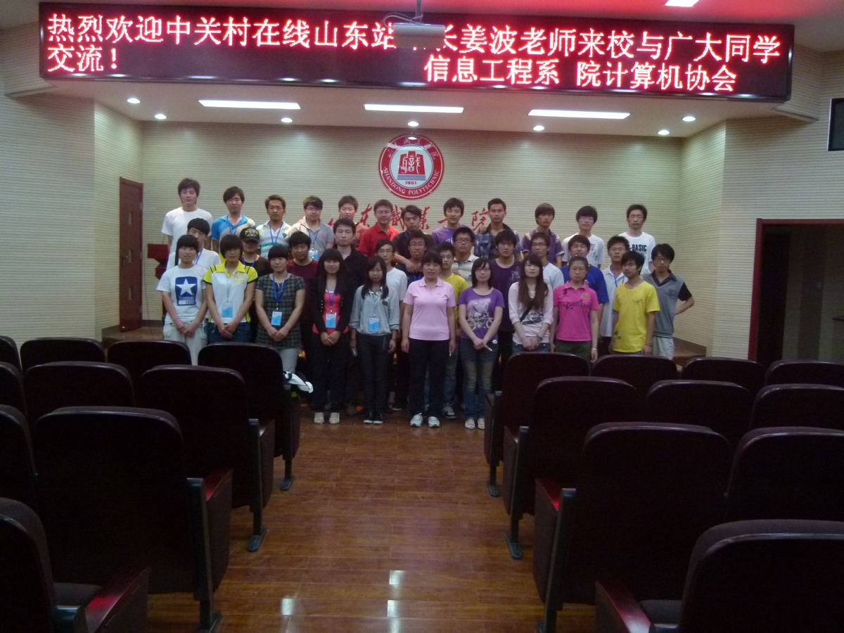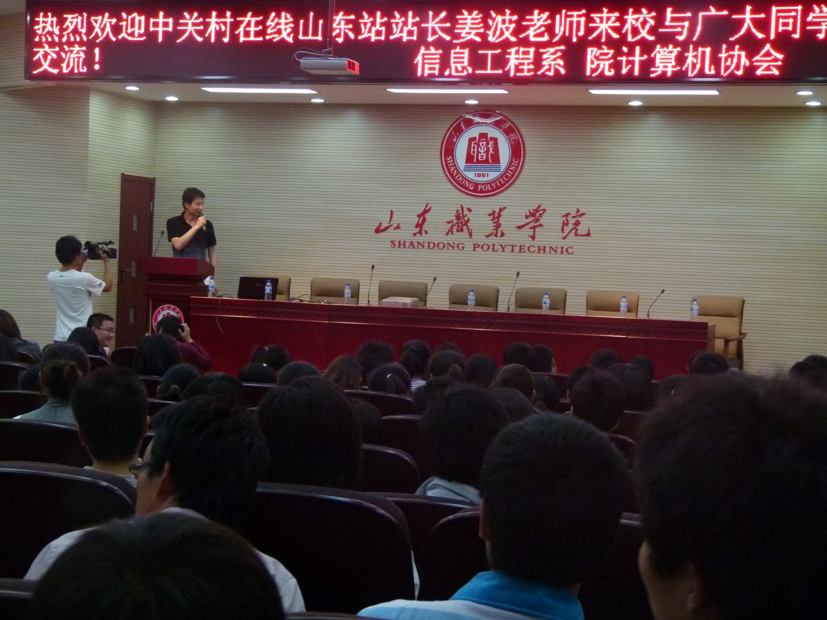 为了响应学院团委的号召,科技文化节的召开,普及同学们的计算机基础知识,提高同学们的综合素质,5月19日下午,信息工程系、院计算机协会于山东职业学院报告厅召开了一场以交流计算机知识为主题的专题讲座,并邀请到了中关村在线山东站站长兼主编姜波老师来为同学们进行了一次激情洋溢、生动有趣的演讲。 讲座伊始,姜波老师以一个小故事简单的向大家介绍了计算机的由来,紧接着又以风趣的语言向大家介绍了计算机硬件的发展历程,现场气氛一度火热。同学们被这有趣的讲座深深吸引的同时,对计算机硬件也有了更深层次的了解。姜波老师凭借着丰富的个人经验和过硬的计算机功底,以诙谐幽默的方式由浅入深的为同学们就主板作了生动细致的解说。还就现实实例分析了最小系统法。最后姜波老师耐心的为同学们一一解答计算机方面的疑问,并与现场同学进行了丰富多彩的的互动活动。 活动历时2个小时,参加的同学大多是对计算机抱有着浓厚的兴趣,都利用这次机会在现场与讲师交流有关计算机的知识,大家学习热情高涨,现场气氛轻松而活跃。同学们不仅提高了自身的计算机知识,还获得了许多精美礼品,可谓获益匪浅。 此次计算机知识讲座,既拓宽了对计算机感兴趣同学的视野,也提高了同学们使用计算机的技能,让大家掌握实用的计算机知识,同时也丰富了同学们的课余生活,特别是邀请的姜波老师带来了现在最新的电脑知识更是使大家大开了眼界。对于此类活动,信息工程系、院计算机协会仍将不断开展,意在不断的普及电脑知识,丰富校园生活,让同学们始终了解到科技的前沿信息。