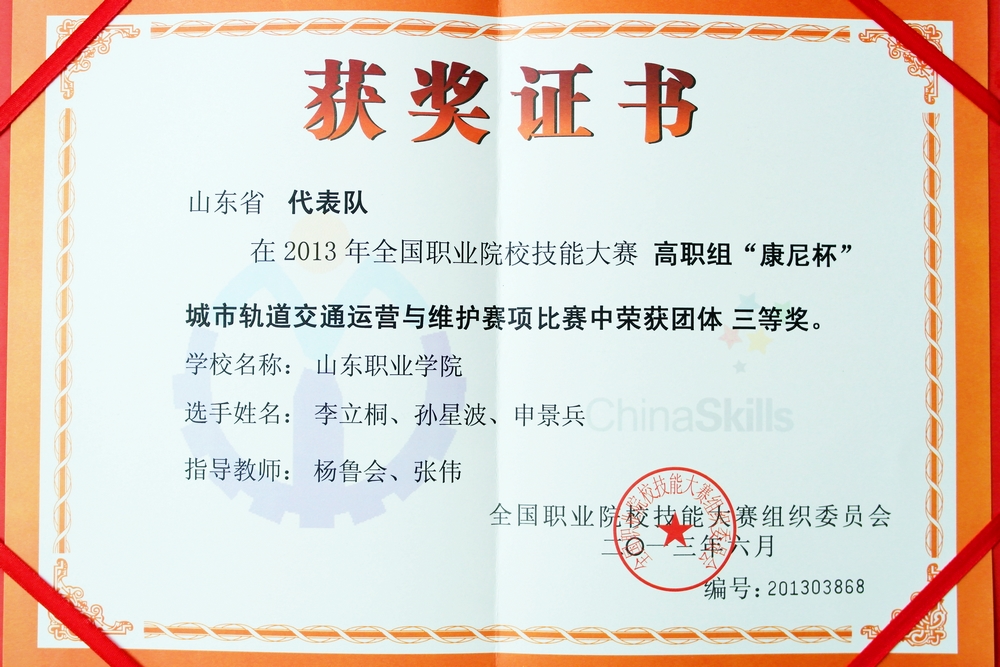 城市轨道交通运营与维护赛项是轨道交通类专业第一次全国性职业技能大赛,有来自全国18个省、直辖市的26支高职院校代表队近200多名师生参加。山东职业学院代表山东省参加了该赛项。在领队山东职业学院轨道交通学院副院长吴书锋和指导老师杨鲁会、张伟的带领下,参赛选手李立桐、孙星波、申景兵凭借扎实的基本功底和较好的临场发挥取得第十名好成绩,荣获本赛项三等奖,为学院争得了荣誉。