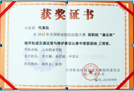 2013年6月17至21日,全国职业院校技能大赛高职组“康尼杯”城市轨道交通运营与维护赛项在南京赛区举行。在领队轨道交通学院副院长吴书锋和指导老师杨鲁会、张伟的带领下,轨道交通学院参赛选手李立桐、孙星波、申景兵凭借扎实的基本功底和较好的临场发挥取得第十名好成绩,荣获本赛项三等奖,为学院争得了荣誉。