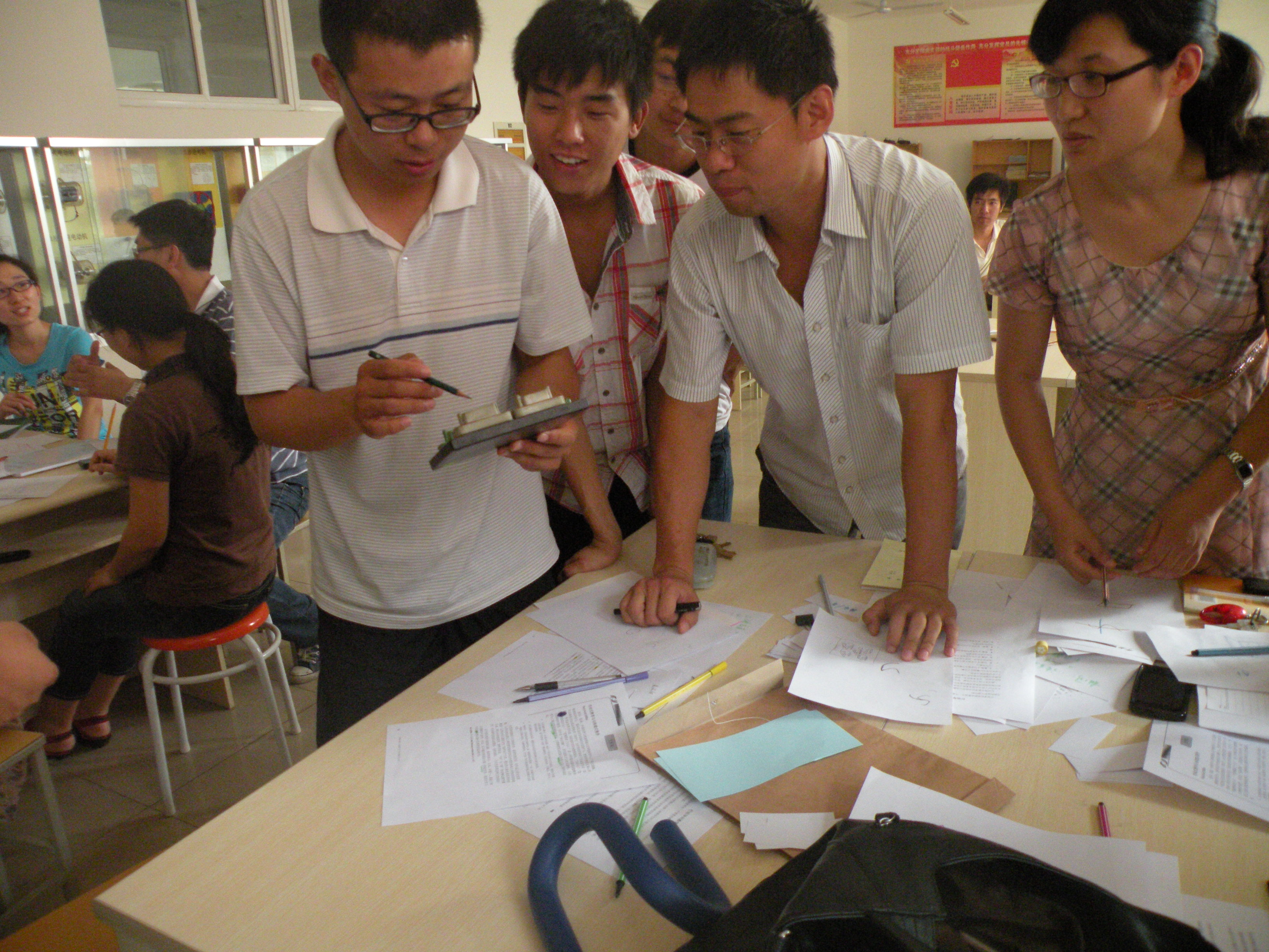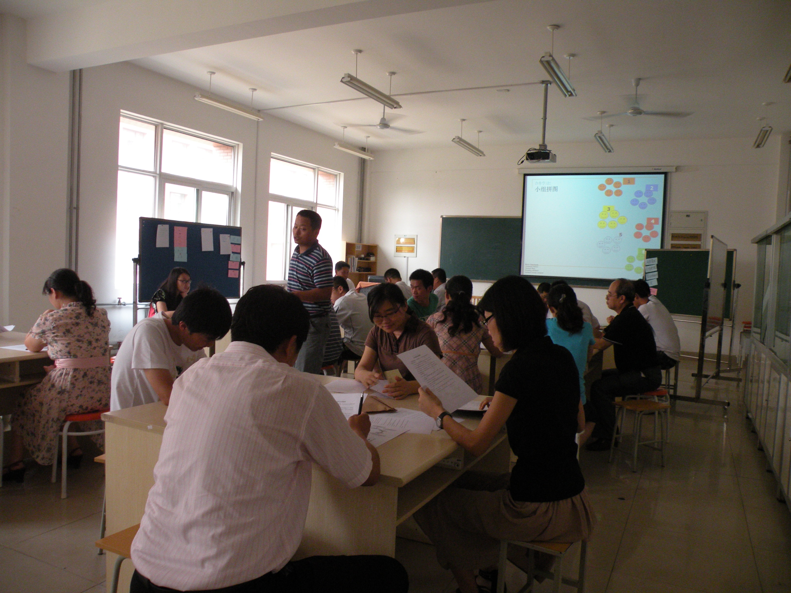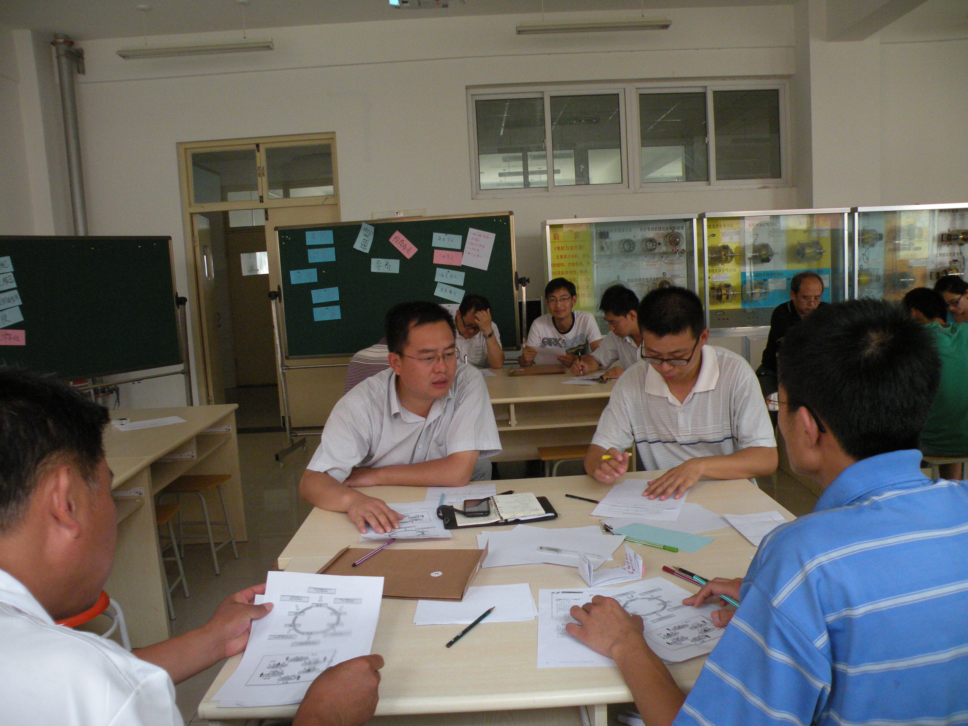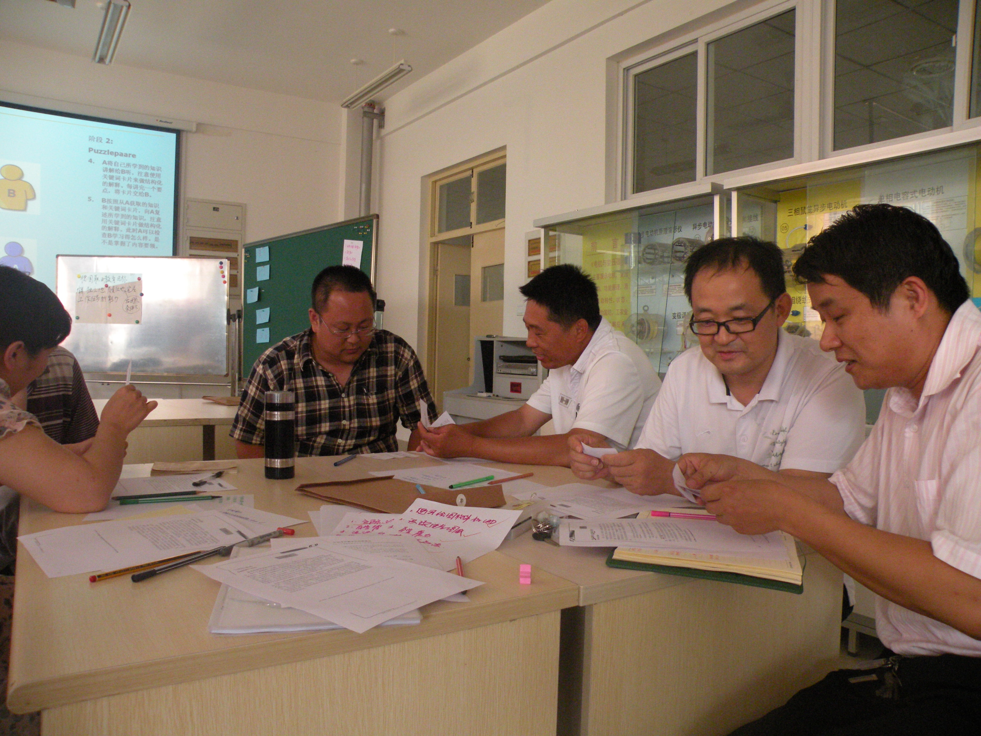 示范课按照“德国行动导向教学法”开展,课堂上所有人员分成多个小组,通过课堂实践,深入学习了拓展小组、旋转木马学习、伙伴拼图学习、小组拼图学习、卡片复习法等行动导向教学方法。