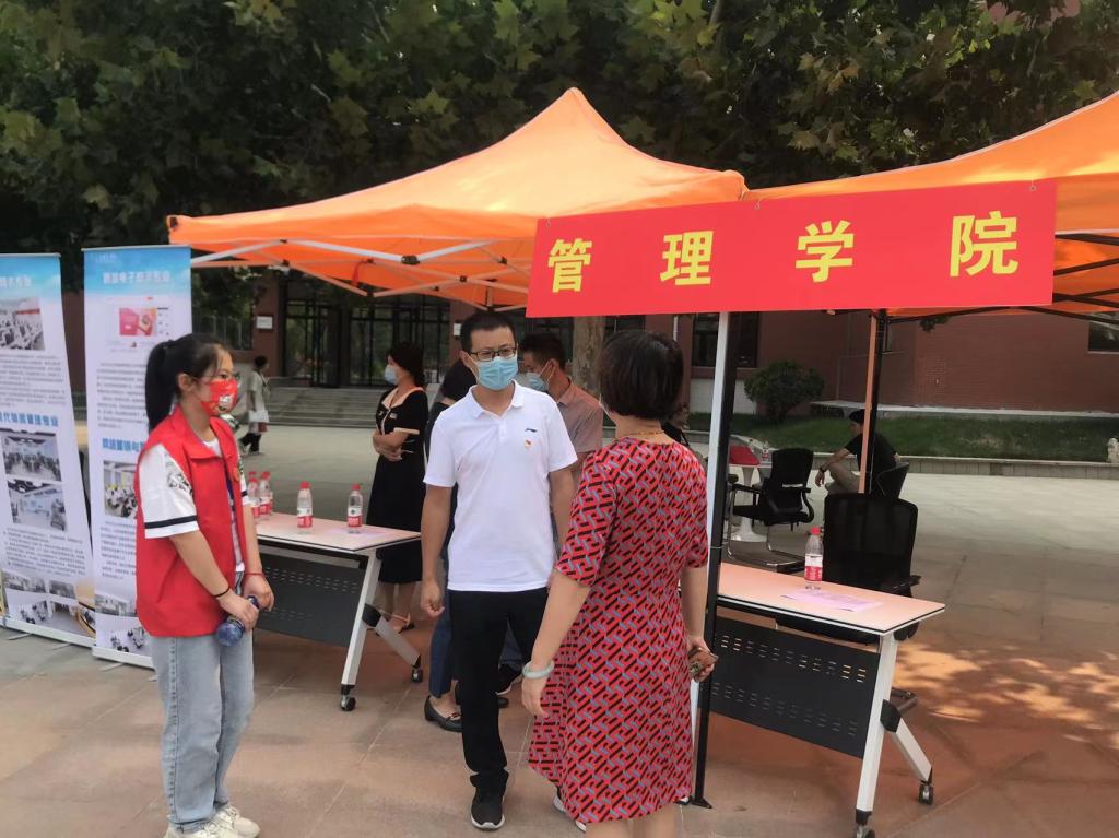 在杨大伟院长的带领下,管理学院8个专业的专家党员在学院广场对学生家长进行了专业咨询。尤其是对专业学习、就业去向、学费缴纳、学生管理等问题进行了咨询。现场学生在学业导师的指导下,加入联络群,保障高效沟通和管理。通过开展的一系列咨询活动,学生和家长对专业情况有了进一步的了解,增强了学生们的荣誉感和学习信心。