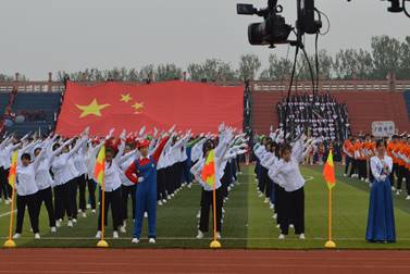 “管理雄风,扬威大众”这是铁道运输与财经管理系嘹亮的口号。他们行进的口号声铿锵有力,这就是花样年华,这就是勇往直前的青春!方队汇演完毕退场后,各系广播体操方队进行比拼,由裁判员老师进行评议打分,体操方队的同学们精神饱满、斗志昂扬,展现了我院学子的青春朝气。广播体操汇演结束后,全体师生起立进行了庄严的升旗仪式,随后,竞赛开始。