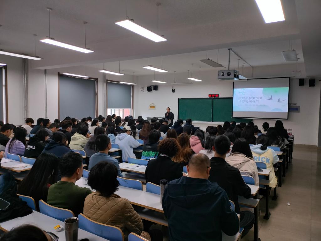 王民权院长以《应用岗位微专业人才培养模式,优化山东职业学院毕业生就业质量》为主题,深入阐述了文职岗位培养的六个重要标准,包括文职岗位培养标准概述、工作知识标准、工作技能标准、工作经验标准、工作能力标准以及职业素养标准。王院长的讲解深入浅出,结合实际案例,让老师们对岗位微专业人才培养有了更清晰的认识。