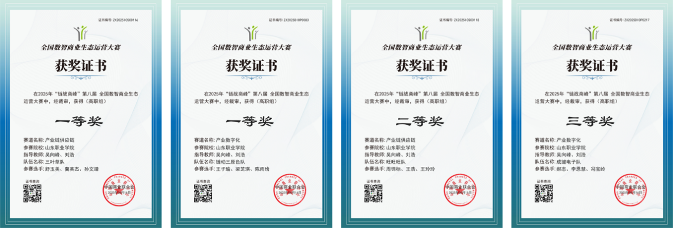 “链战商峰”全国数智商业生态运营大赛是由中国商业联合会主办的全国性赛事,旨在通过模拟真实的数智商业生态场景,培养学生的数据分析能力、决策能力以及团队协作能力。共有来自全国各地的300多支队伍参加比赛。我校管理学院吴向峰、刘浩老师指导的四支队伍沉着应战、精准分析、协同合作,经过初赛、复赛两个阶段,最终由舒玉美、冀英杰、孙文靖组成的“三叶草队”和由王子瑜、梁芝琪、陈雨晗组成的“链动三原色队”获得一等奖,由周锦标、王浩、王玲玲组成的“旺旺旺队”获得国赛二等奖,由郝志、李恩慧、冯宝岭组成的“成键电子队”获得国赛三等奖。