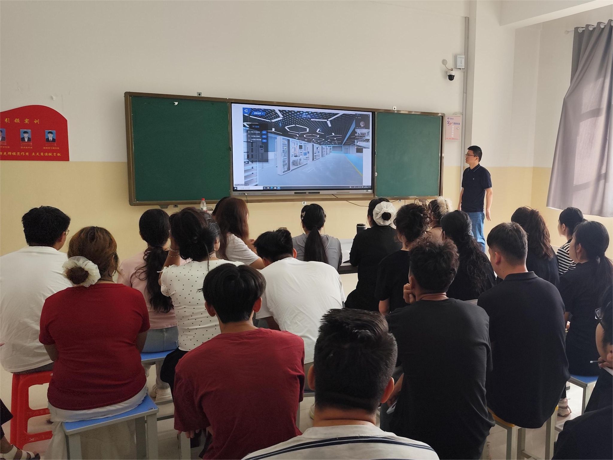 为响应教育部“慕课西行”号召、推动东西部教育资源共享,6月20日上午,我校智能制造虚实融合公共实训基地与喀什职业技术学院智慧教室同步开展“慕课西行”联合课堂。两校80余名师生参加。