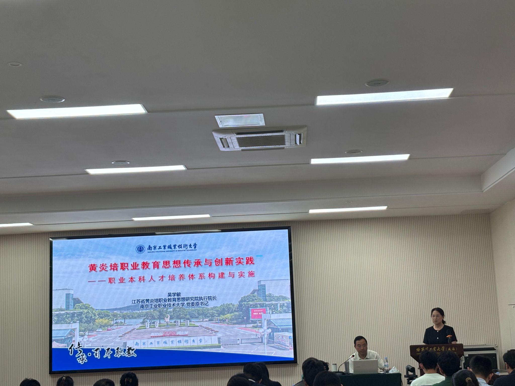 南京工业职业技术大学原党委书记、江苏省中华职业教育社副主任吴学敏系统分析了职业教育发展的机遇与挑战,提出了抓住“五个关键环节”来构建人才培养体系的具体路径,并重点介绍了南京工业职业技术大学师资队伍建设的做法与成效。