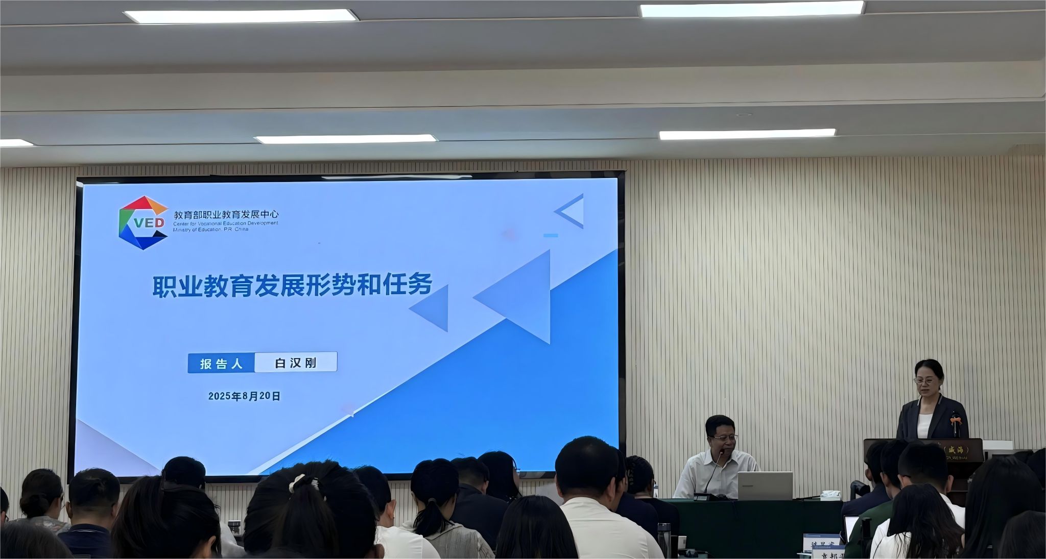 教育部职业教育发展中心战略发展处处长白汉刚重点阐述了职业教育面临的发展形势,深刻分析了职业教育立德树人、产教融合、五金建设、职教出海等十二项发展任务的内涵及要求,明确提出了实施路径与发展举措。