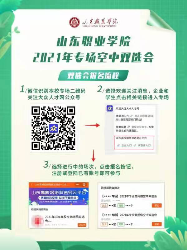职汇云端 才聚线上山东职业学院空中双选会邀请函2021年5月专场