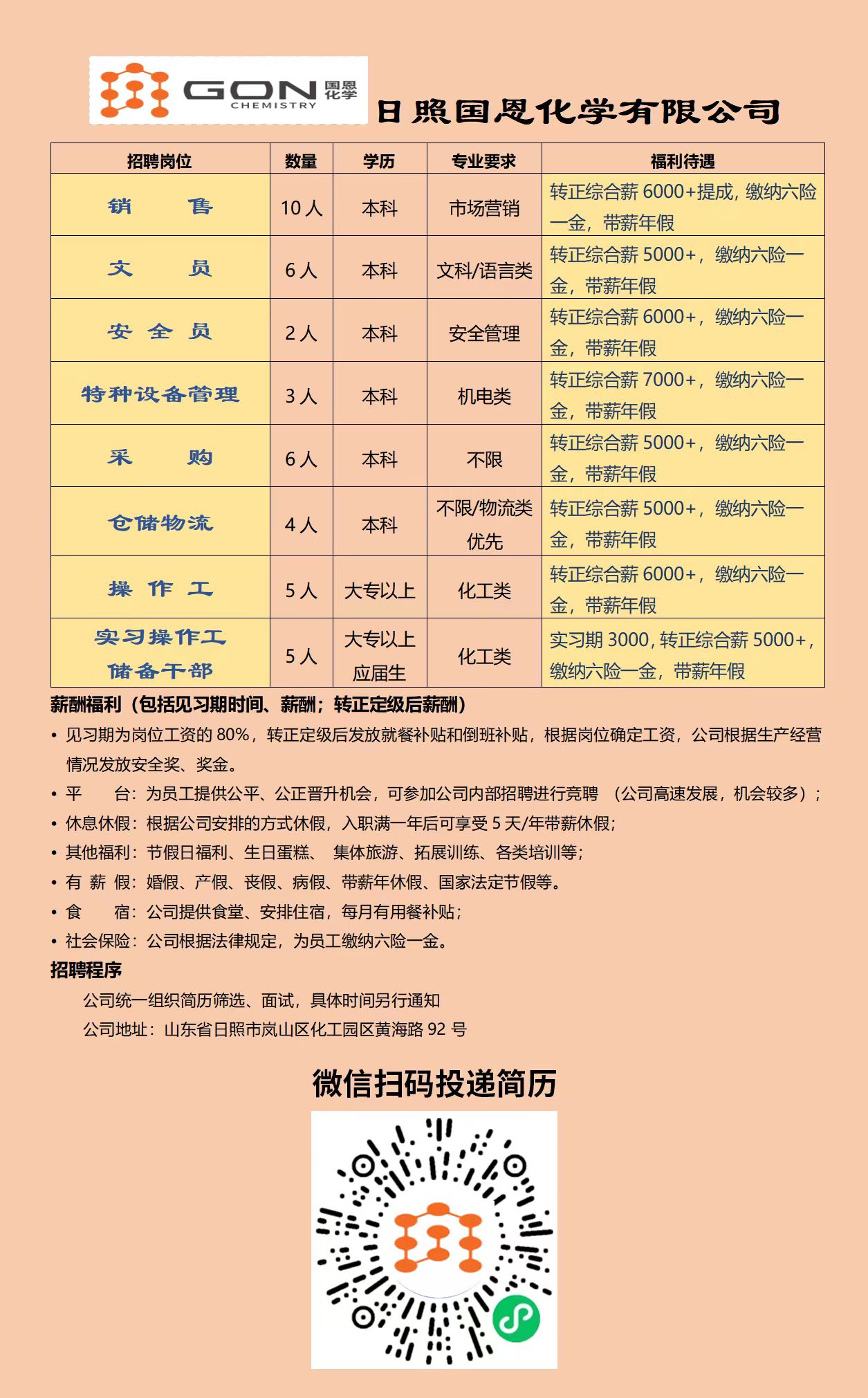 日照国恩化学有限公司招聘简章