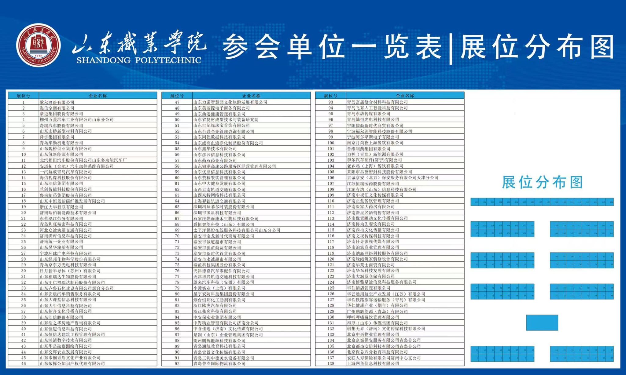 山东职业学院 参会单位一览表|展位分布图