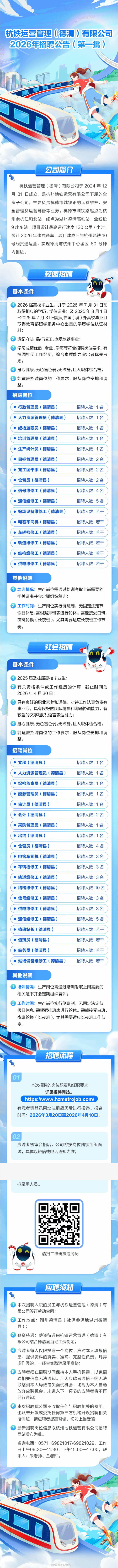 杭铁运营管理(德清)有限公司2026年招聘公告(第一批)