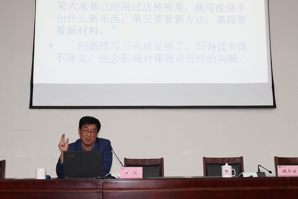 10月18日下午,山东省社科规划管理办公室主任杜福受邀来我院做了题为《人文社科规划项目申报的几个问题》的学术讲座。会议由学院纪委书记祝介安主持,全院300余名师生参加讲座学习。