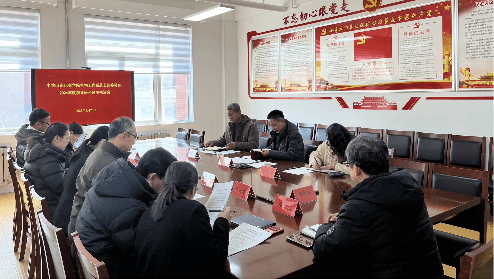 2025年2月25日下午,生物工程系党总支在6号教学楼6308会议室召开2024年度民主生活会。本次会议由党总支书记吕映辉主持,系党总支领导班子成员全员参会,学校督导组李新华、郝代军、赵飞飞同志到会督导,生物工程系王绍良列席。