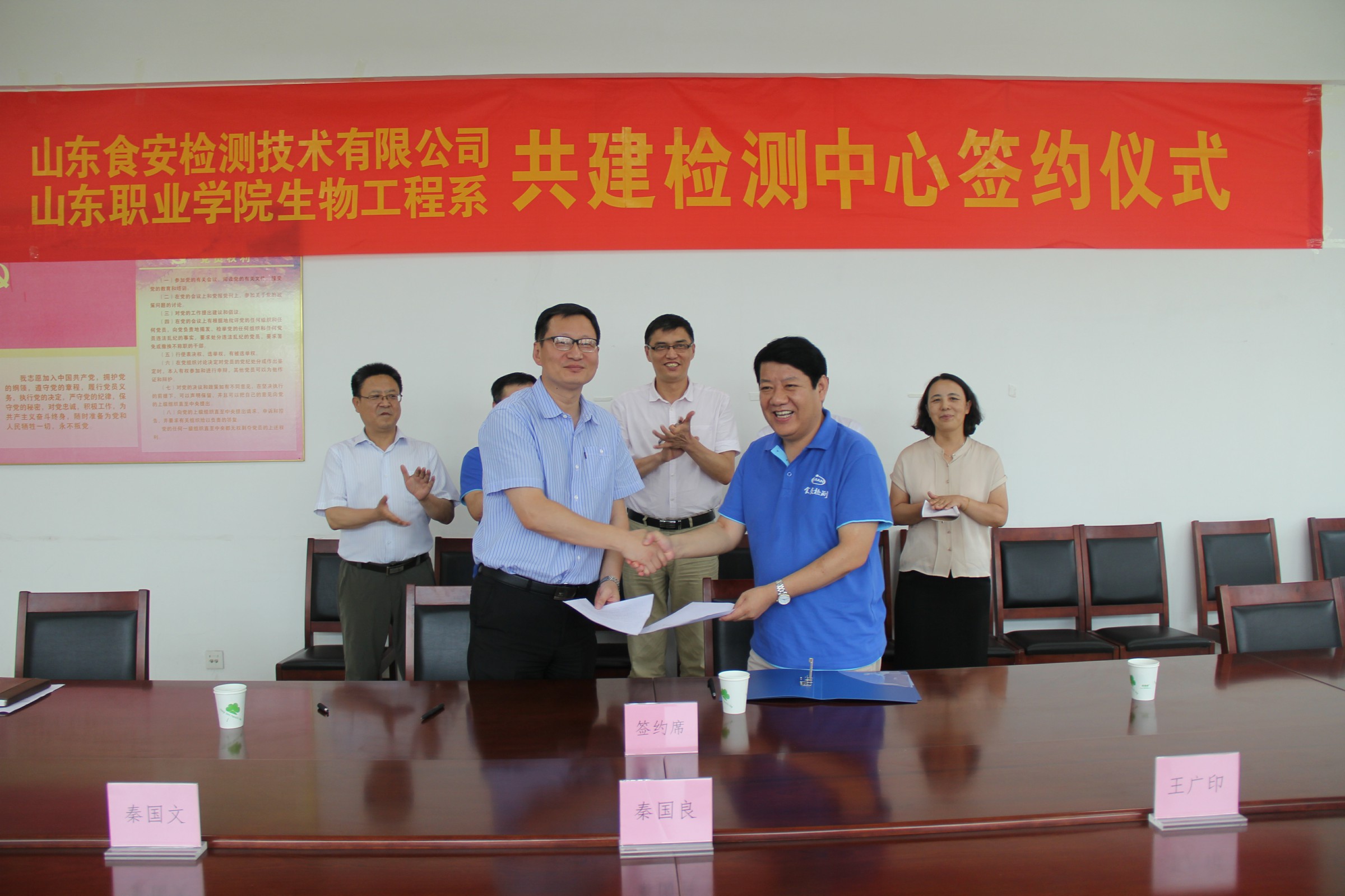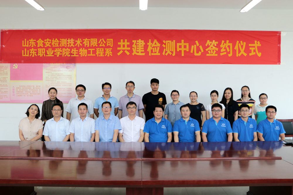 2017年7月5日,山东食安检测技术有限公司与山东职业学院就“校企共建食品安全检测中心”项目签约仪式生物工程系会议室举行。