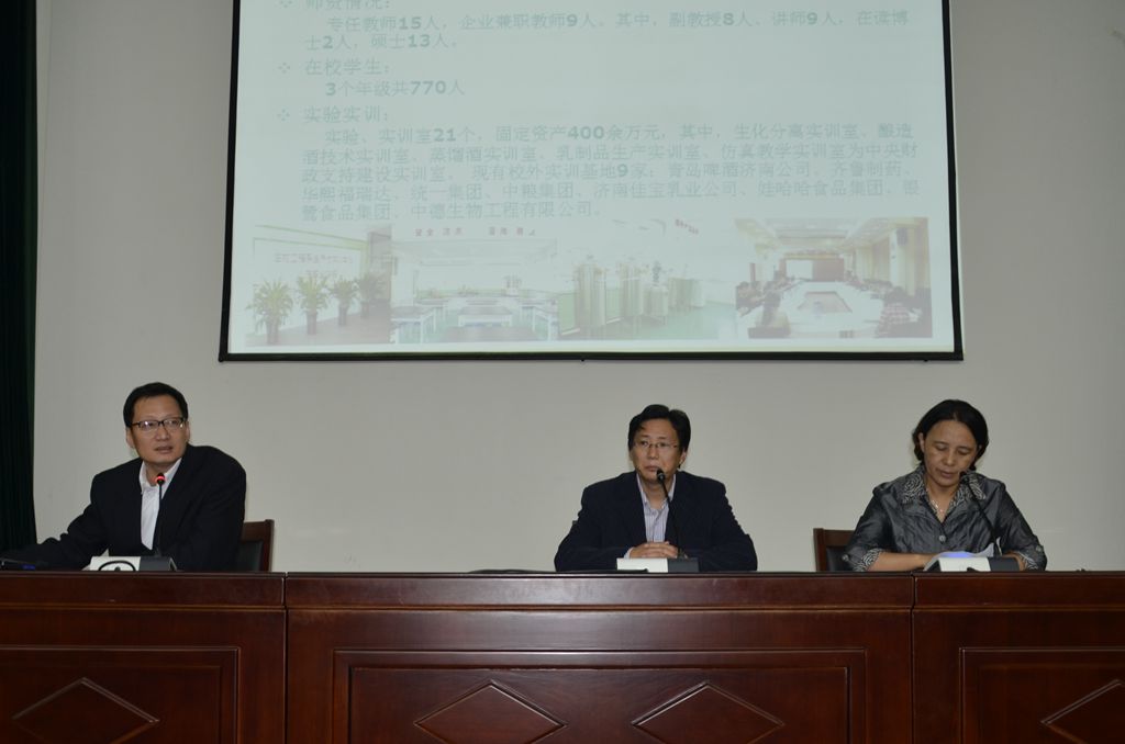之后,生物技术及应用、生物制药技术和食品营养与检测三个专业又分场地由教研室主任进行了详细的专业介绍。