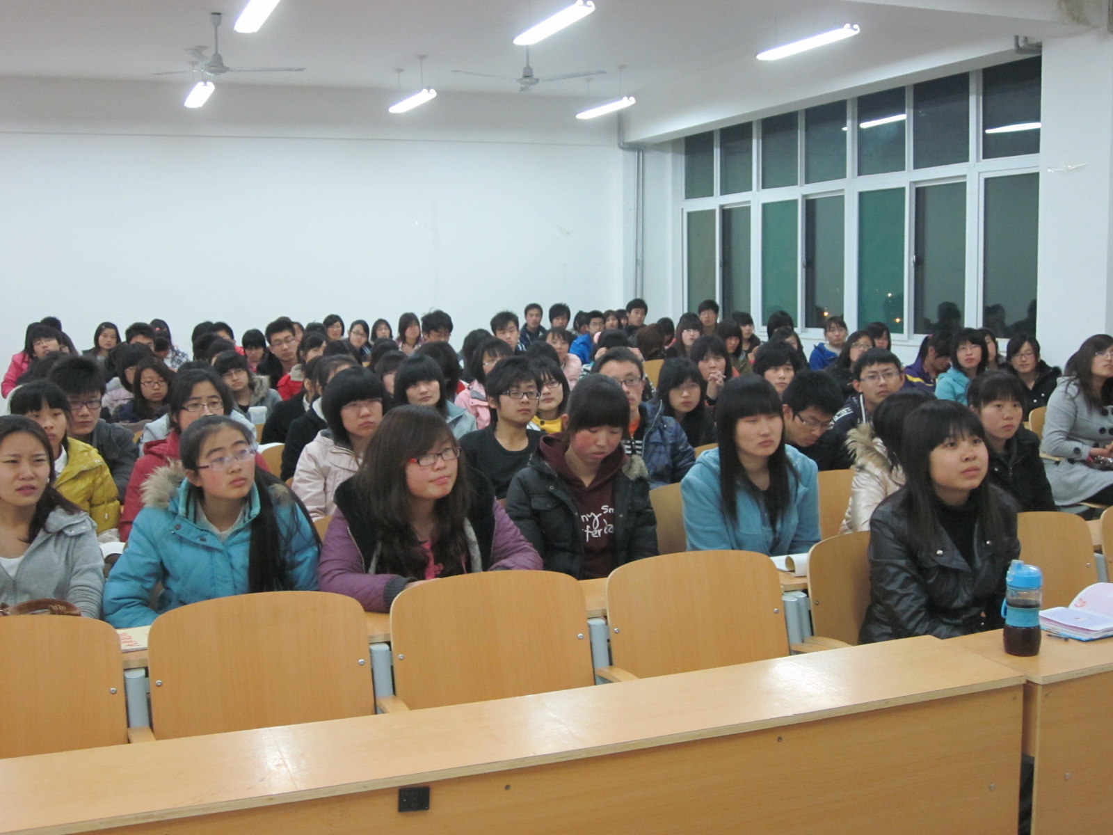 讲座还未开始,教室里已坐满了等待的学生,从他们期待的眼光中可以看出对知识、学习方法的渴望,于磊娟老师一落座就引来同学们热情的掌声。讲座开始了,于老师向我们讲授了她个人在学校到走向社会的再到就业于我校工作的曲折路程。于老师原是山东轻工业学院的一名中专生,但她并不满足于当时的现状,凭借自己的勤奋努力,先后经历了4次关乎人生转折的考试。一步步摸索着走向成功,走向自己从事的理想职业。但于老师幽默诙谐的语言引得同学们一阵又一阵的笑声。笑声中,有赞扬,有敬佩、有启发,有暗暗下定努力学习的决心。最后讲座在21:00钟结束。