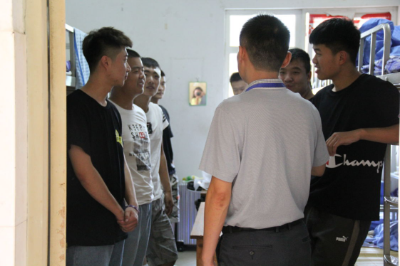 下午,在新生入住公寓后,生物工程系主任张守忠以及辅导员老师前往宿舍看望新同学,张守忠主任亲切地询问了同学们是否适应学校生活,并多次强调同学们要注意安全,谨防诈骗。他提醒同学们现在就可以为自己大学三年的生活做一个详细规划,尽早确立学习目标和职业目标。