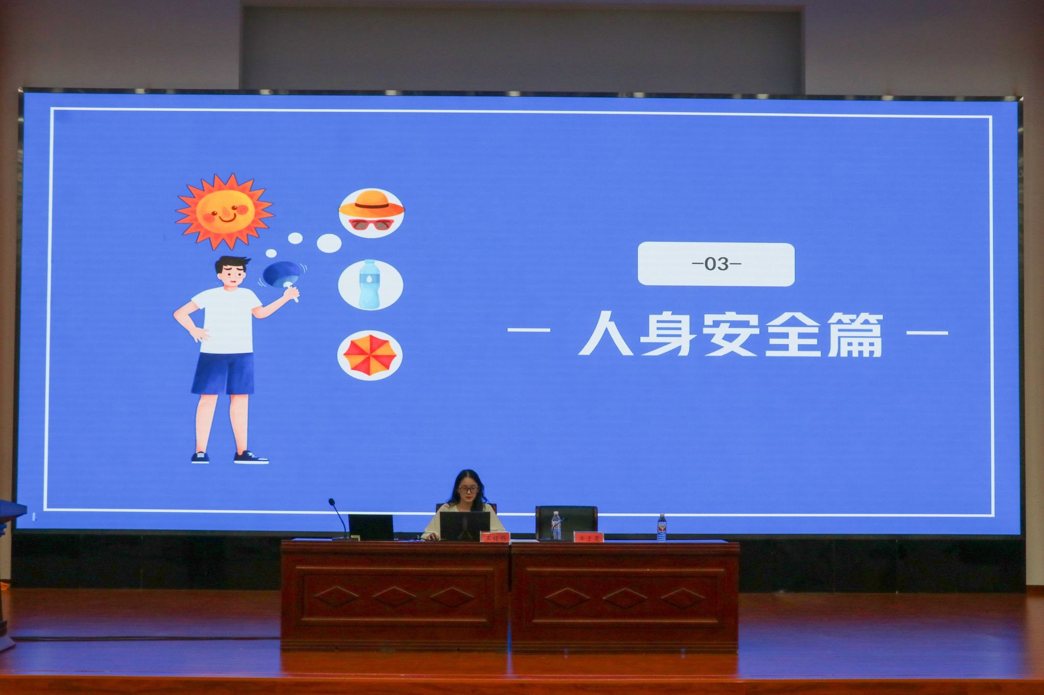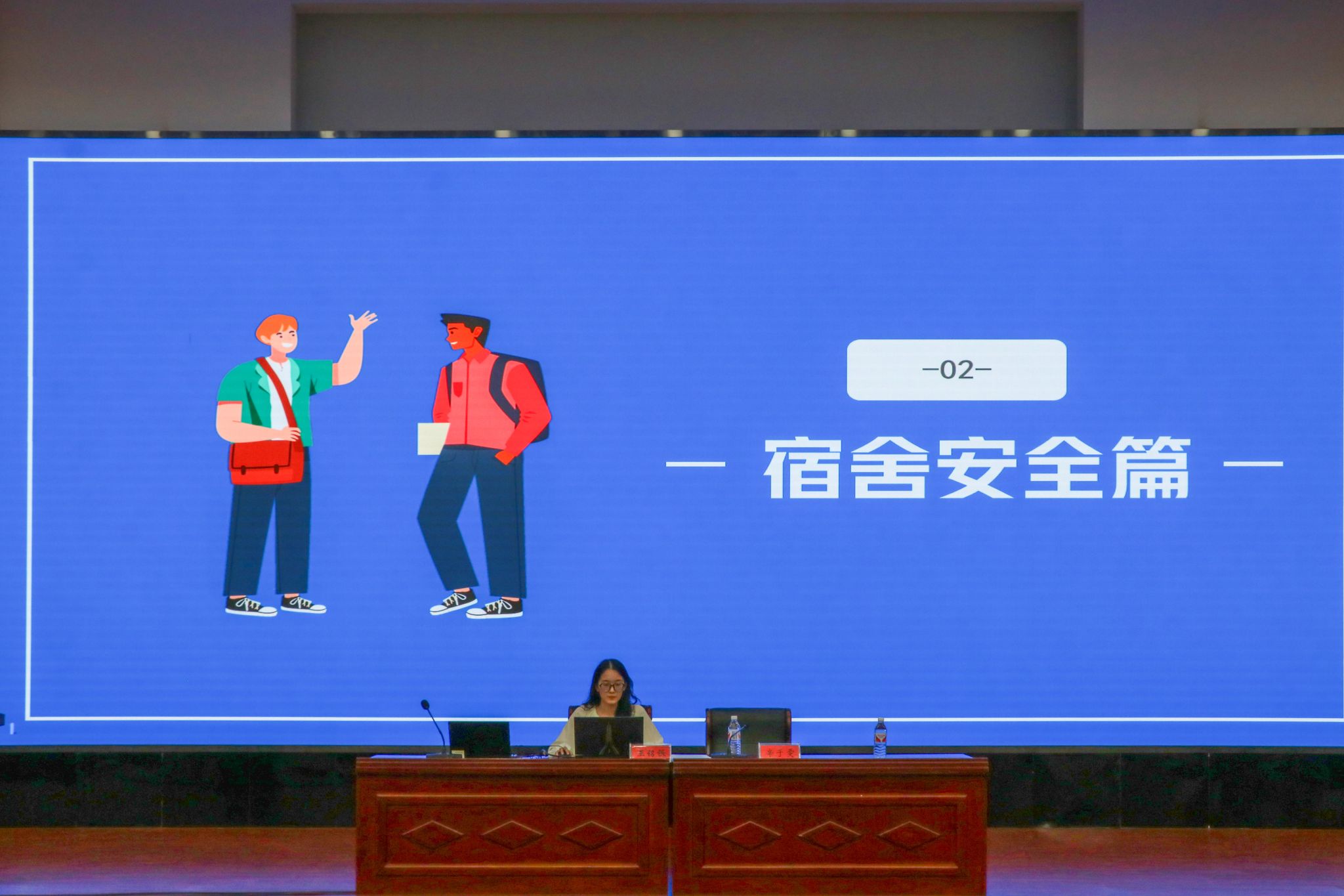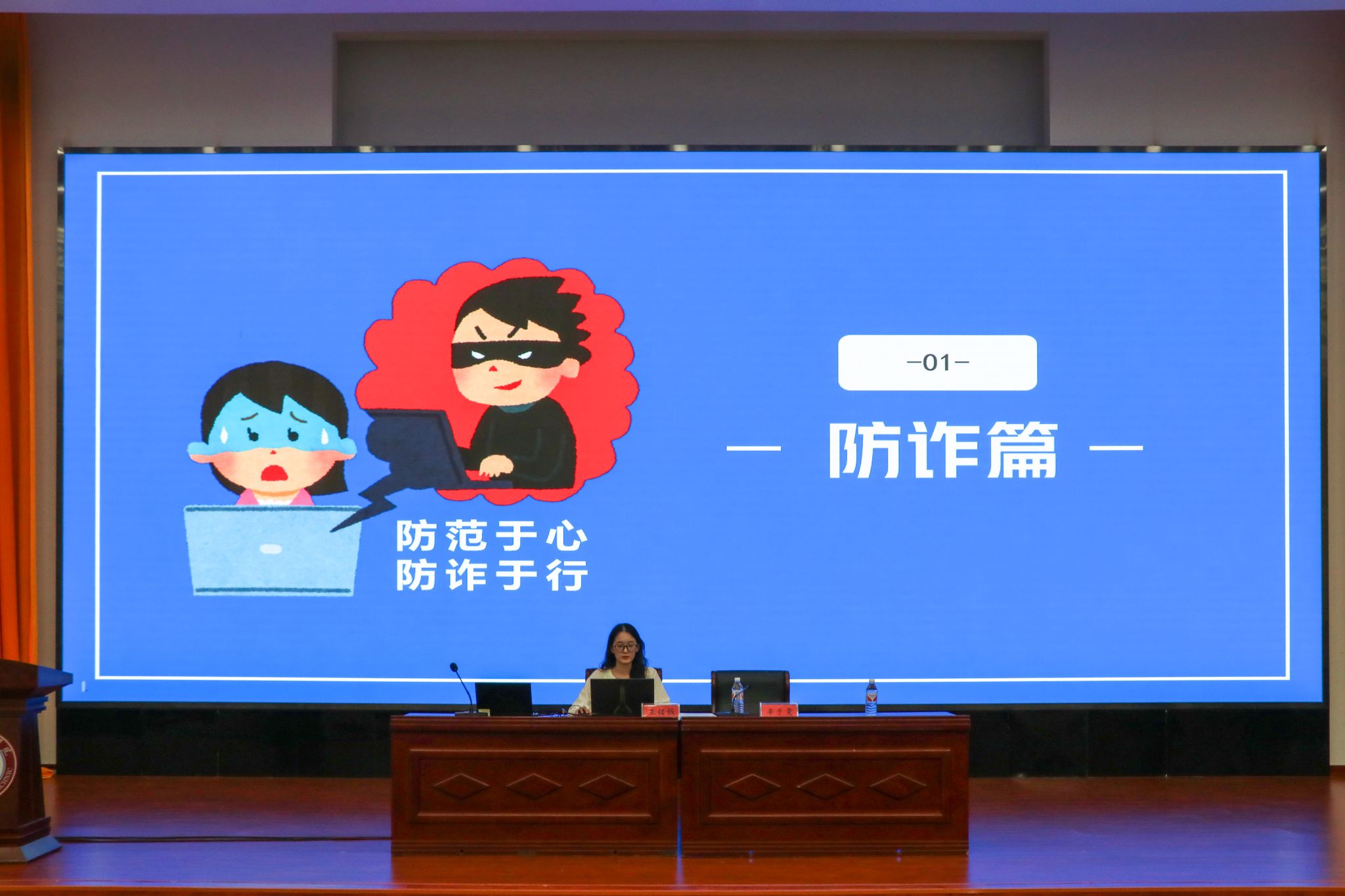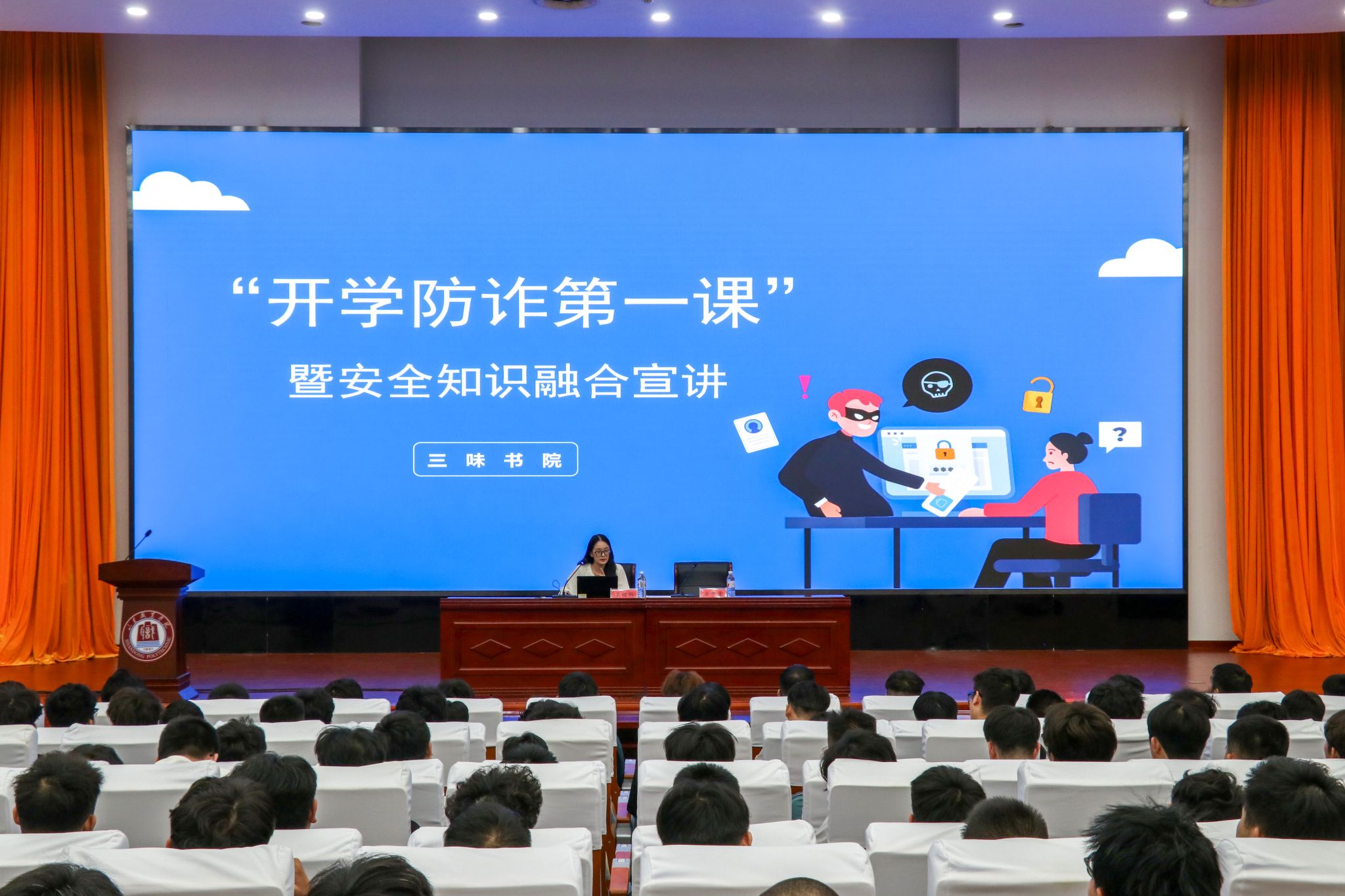 会议第二环节,王铭铄作为新生辅导员代表发言,给同学们带来了开学防诈第一课暨安全知识融合宣讲,希望同学们能提高防诈意识,科普反诈多牢记,防骗知识勤学习。此外,就宿舍安全、人身安全、交通安全等方面的防范知识与要求也进行了重点强调。希望通过这些安全提醒,帮助学生提高防范意识,平安度过美好的大学时光。