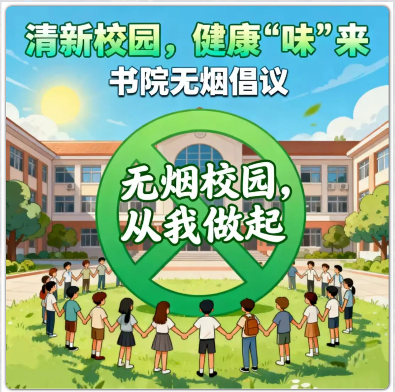 为营造清新、健康、文明的校园氛围,切实保障全体师生的身心健康,书院近日发起“清新校园,健康‘味’来”无烟倡议。建设无烟校园,是落实立德树人根本任务的重要环节,是帮助学子良好生活习惯、展现书院文明风貌的关键举措,这离不开每一位师生的自觉参与和共同努力。