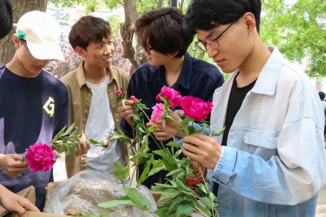 活动现场,学生们情绪高涨,人头攒动。一支支含苞待放的芍药摆放整齐,吸引大家驻足,负责活动的志愿者们耐心热情,为同学们科普芍药花的知识,以及后期养护方法。赢得了广大同学的喜爱,送出的不仅仅是一支花,更是一份来自菏泽的深情厚意。