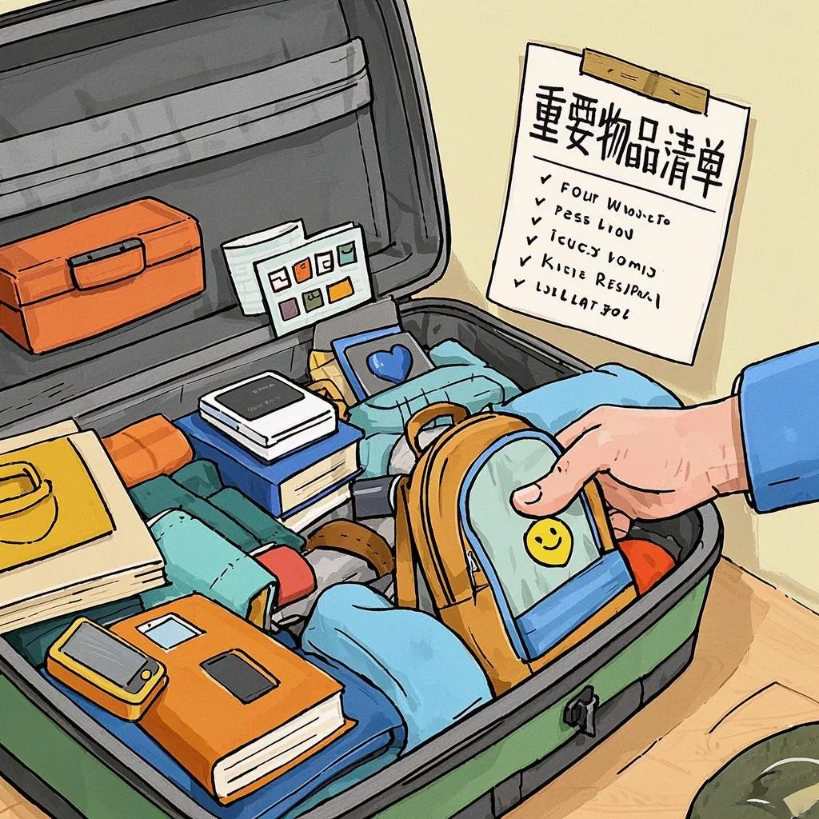 收拾行李时,要仔细检查个人物品,确保不遗漏重要物品。特别要注意,贵重物品如现金、首饰、电子产品等,假期一定不要放在宿舍,以免发生意外情况。
