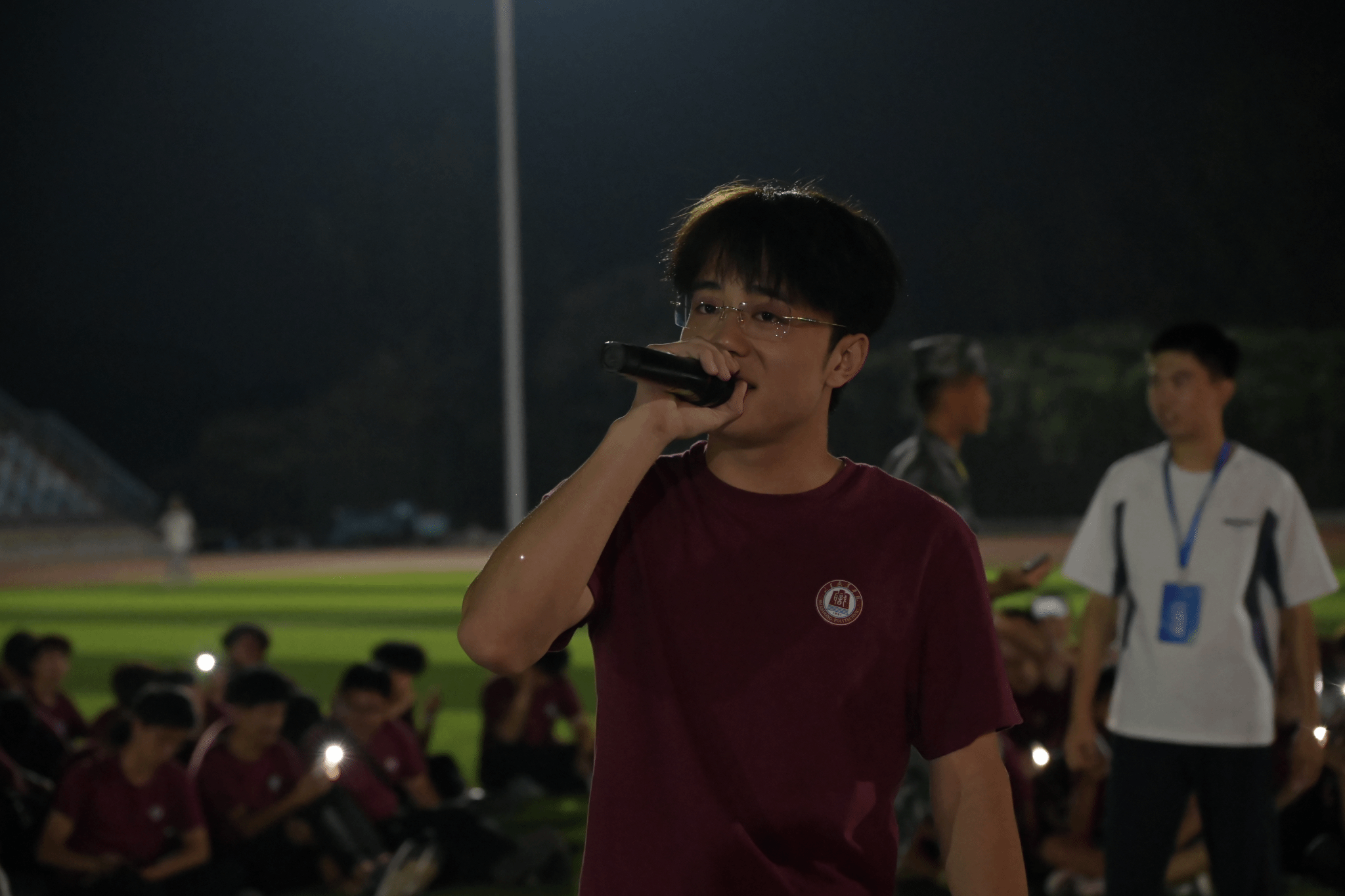 训练间隙的唱歌比赛让刚还保持着严肃站姿的少年们瞬间松下紧绷的神经,各连代表轮番走到队伍前,用略带沙哑的嗓音高唱军歌,声浪裹着热气在操场上回荡;嗓音清亮的同学一开口,便让喧闹的操场瞬间安静,只剩歌声伴着微风飘向远方。这充满激情的瞬间,让枯燥的训练也多了几分青春独有的鲜活与热烈。