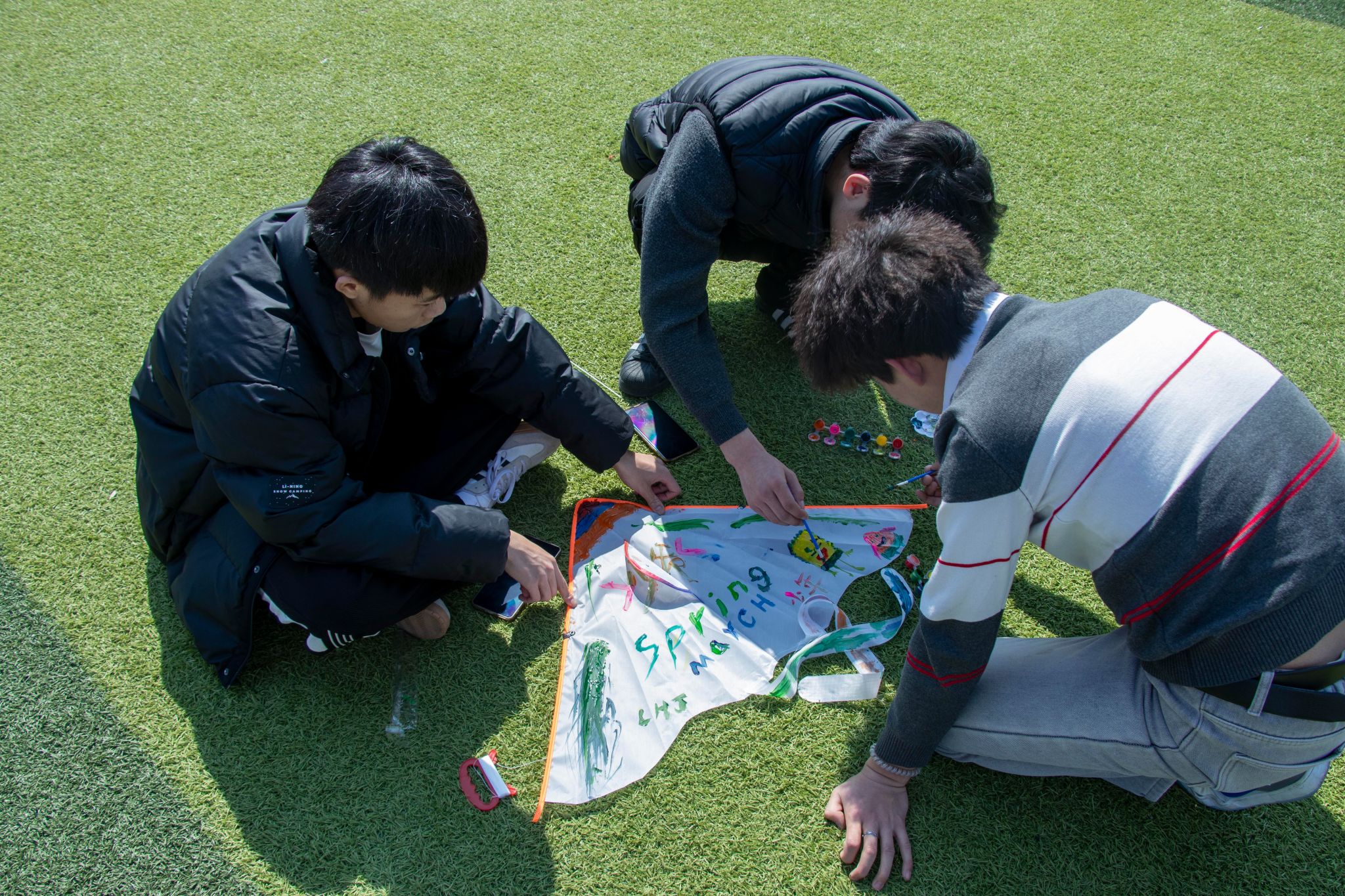 活动伊始,同学们分组协作,围绕“青春活力”、“传统文化”、“心理健康”等主题,展开富有创意的风筝制作与彩绘。现场气氛热烈而温馨,这个过程分工明确,或勾勒线条,或填充色彩,将美好的愿景与独特的创意融入方寸风筝之上。一笔一画间,不仅展现了同学们的艺术才华,更体现了团队协作的力量与默契。原本素净的风筝骨架,在大家的巧手下变成了一个个色彩斑斓、形态各异的“空中精灵”,承载着青春的希望与对美好生活的向往。