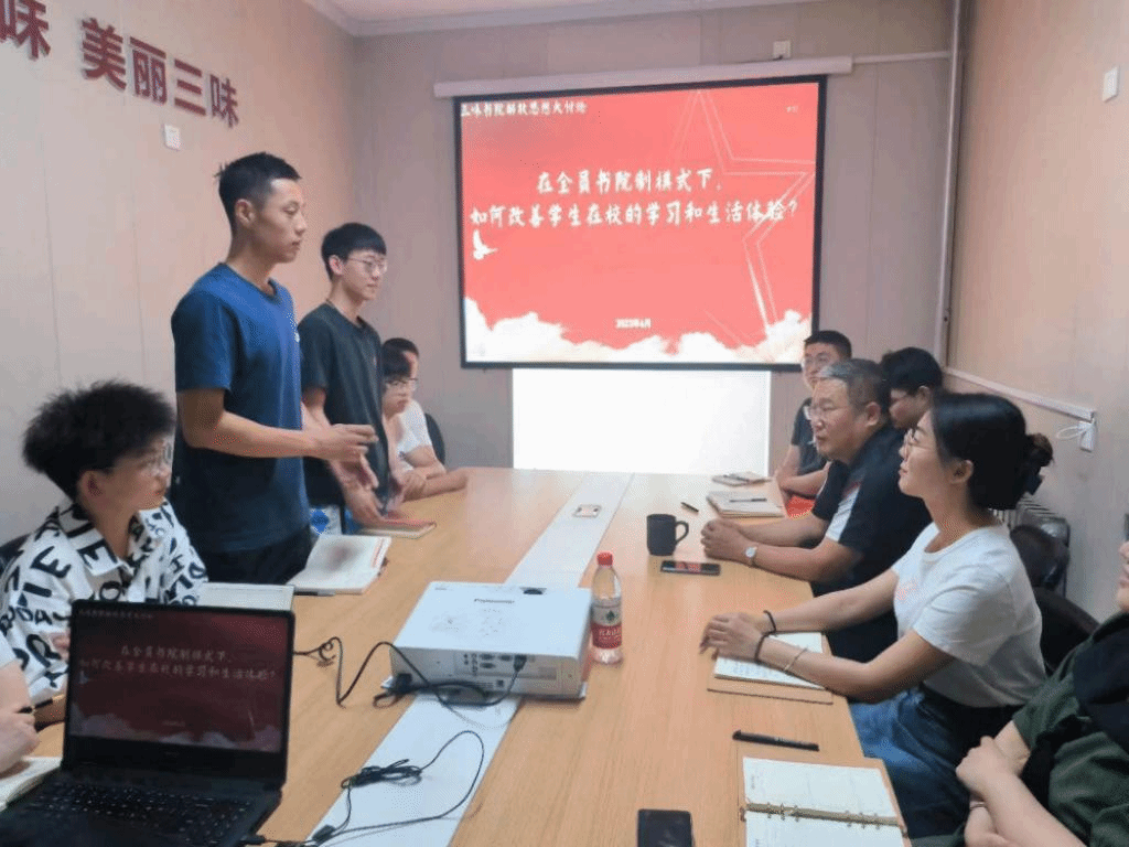 师生代表从“问题不足差距短板”“对标标杆先进经验”和“思路理念对策建议”三个方面展开讨论,提出见解和建议。讨论中,大家从育人场域割裂、育人平台疏离、育人内容窄化三方面提出了当下书院制模式的不足。通过讨论,吕立宁认为在全员书院制模式下,应从以下三个方面改善学生在校的学习和生活:一是做好环境育人。要注重依托学生宿舍搭建新型书院社区,真正实现学生公寓从单一住宿功能向复合育人功能转变,将学生公寓打造成为立德树人的育人阵地;二是强化组织育人。要牢固树立“学生在哪里,育人阵地就建在哪里”的工作理念,育人力量要进一步下沉到书院社区,压实到学生一线。三是做好活动育人。书院要注重以活动为载体,打造书院特色品牌活动,满足青年学生德、智、体、美、劳全面发展的需要。
