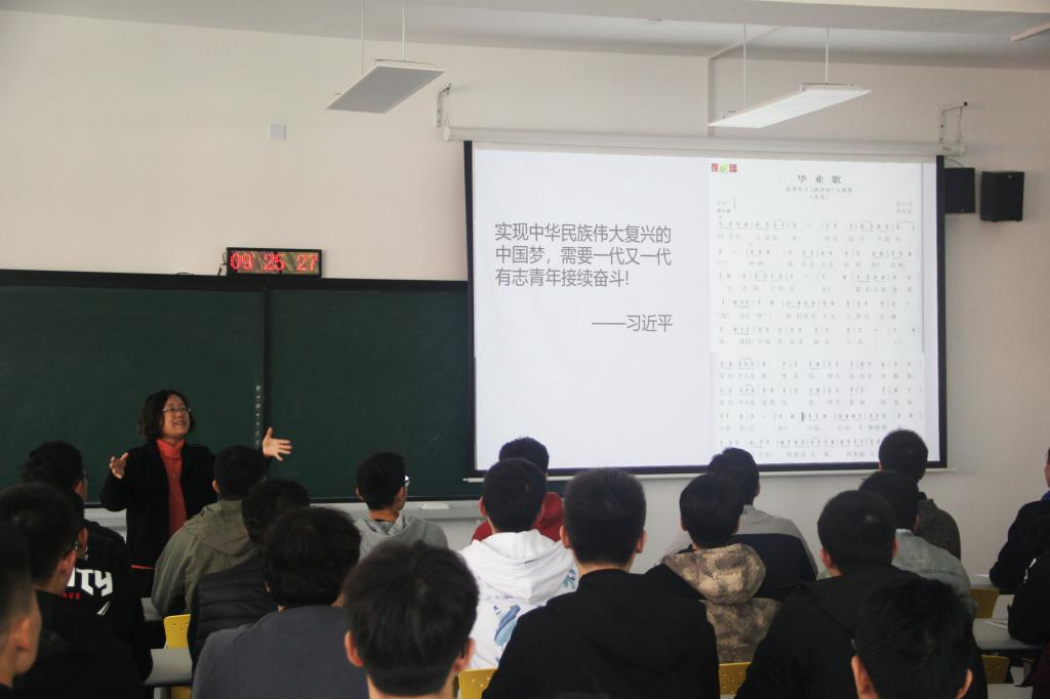 罗磊向学生们讲解了什么是意志品质,并分享了校友刘云清逐步成为大国工匠的成功经历。她希望学生能够在困难面前迎难而上,从点滴小事做起,培养良好的意志品质,努力奋斗,实现自我人生价值,争做优秀山职人。最后,全体师生齐唱毕业歌。