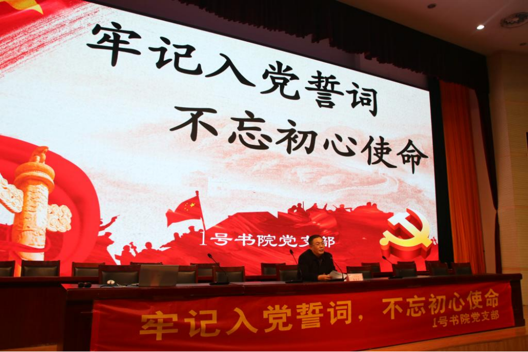12月25日,书院党支部书记吕立宁讲授“牢记入党誓词 不忘初心使命”党课。吕立宁首先带领大家在庄严的国歌下重温了入党誓词,随后引用了习近平总书记的一句话告诫大家:“入党誓词字数不多,记住并不难,难的是终身坚守。每个党员要牢记入党誓词,经常加以对照,坚定不移,终生不渝。”全体党员要自觉用习近平新时代中国特色社会主义思想武装头脑,坚定为共产主义事业奋斗终身的信心和决心,牢记共产党员的政治责任和初心使命,永葆共产党员的政治本色。