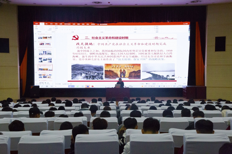 吕立宁运用通俗易懂的语言、丰富翔实的史料、立体多元化的视角,从中国新民主主义革命时期、社会主义革命和建设时期、改革开放和社会主义现代化建设新时期、中国特色社会主义新时代四个阶段讲授了中国共产党的百年辉煌,党课内容站位高远,内涵丰富,既有历史的纵深,又有现实的高度,既有理论的厚重,又有实践的指导,让学生对党史有了更全面的认识和了解。最后吕立宁指出,当代大学生应明确人生目标并活出精彩,掌握好专业知识,培养兴趣爱好,并嘱托大家要不忘初心,再出发!