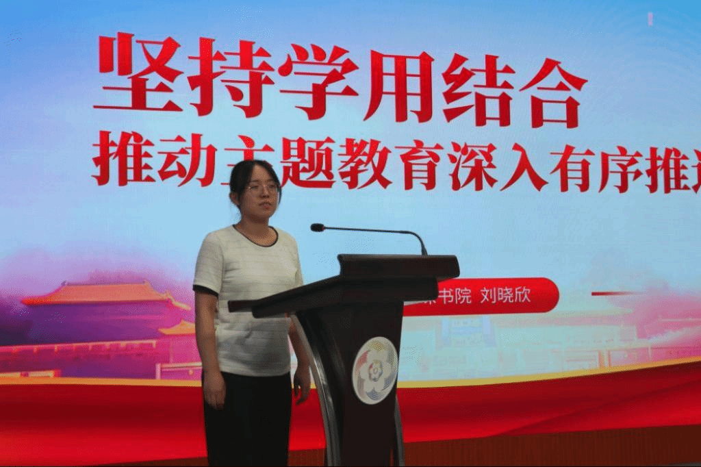 刘晓欣以《坚持学用结合,推动主题教育深入有序推进》为题开展培训,从习近平新时代中国特色社会主义思想的科学体系、精髓要义、实践要求等方面希望学员坚持学用结合、以学促干,努力实现新时代青年学生的使命与担当。